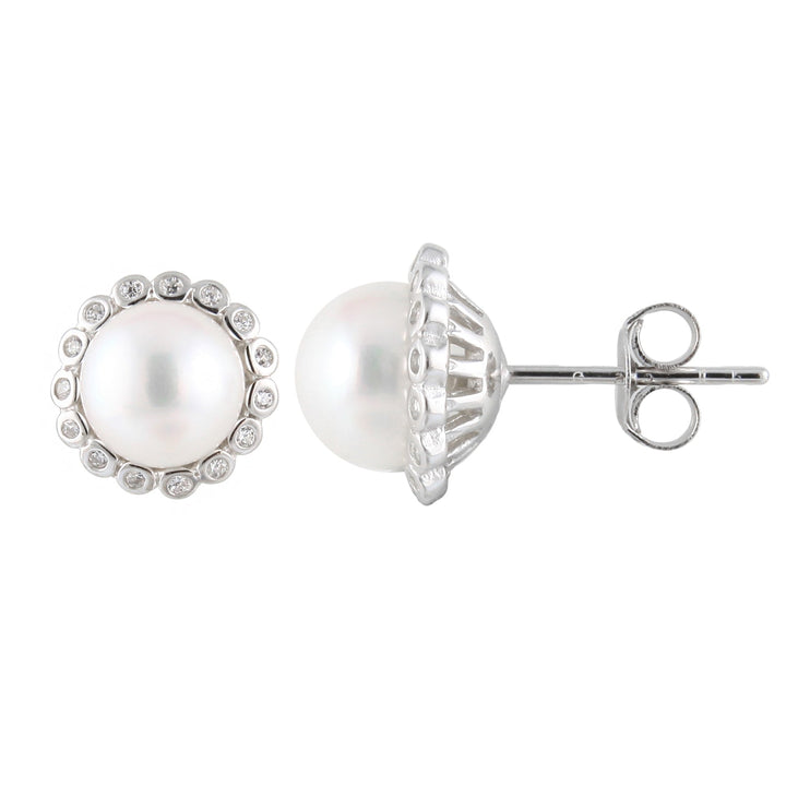 Sterling Silver Halo 7-7.5mm Freshwater Pearl Studs