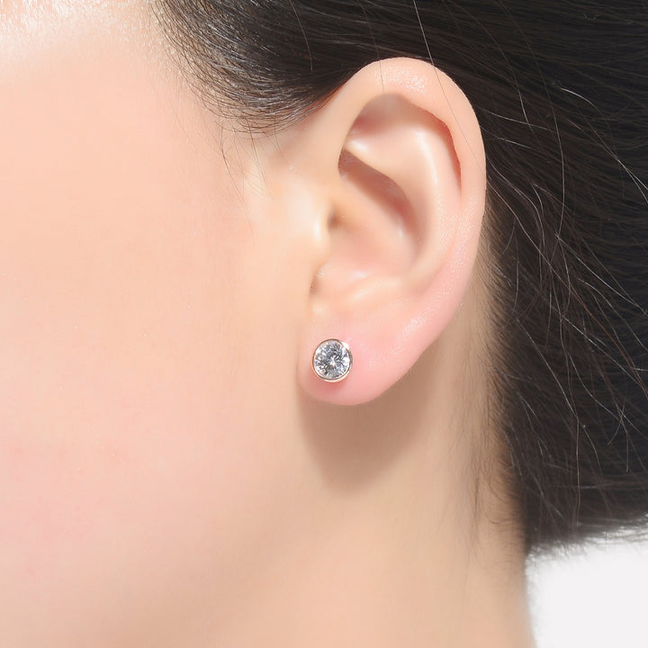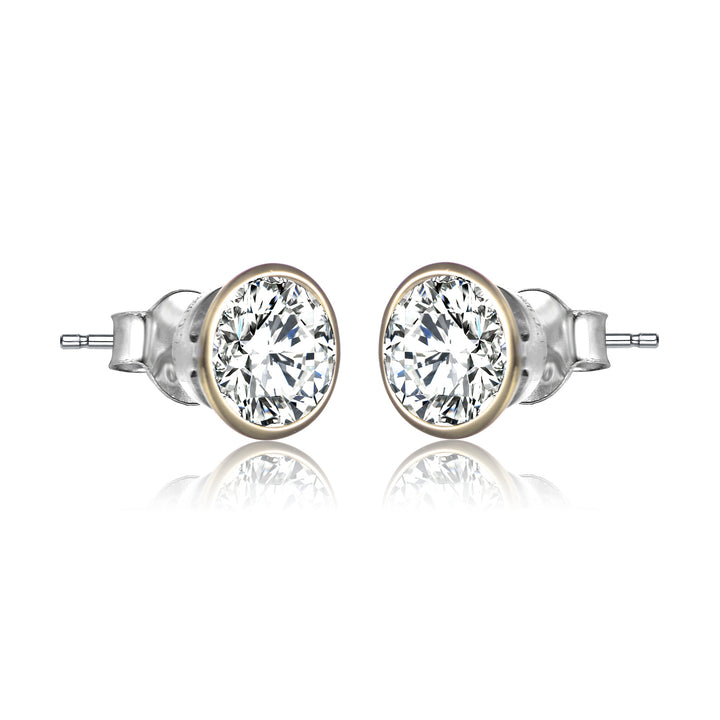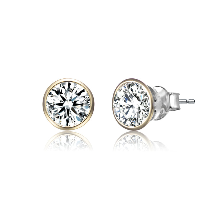Crafted in sterling silver with rhodium and gold plating for a two-tone finish. Features clear round-cut cubic zirconia center stones. Secured with butterfly closures for a comfortable fit.