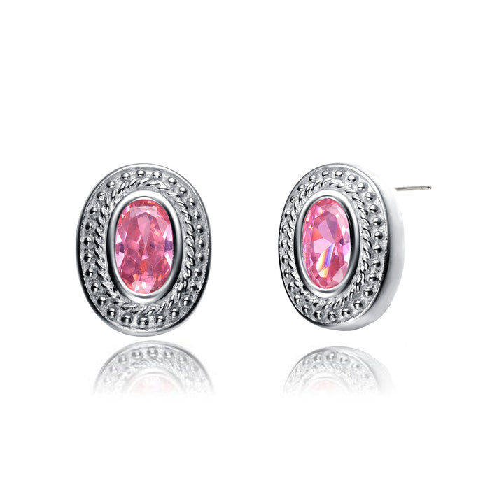 Sterling Silver Pink Cubic Zirconia Oval Stud Earrings