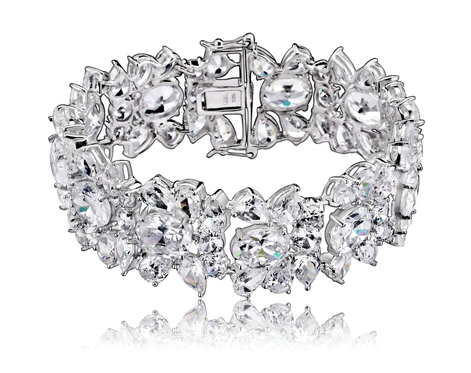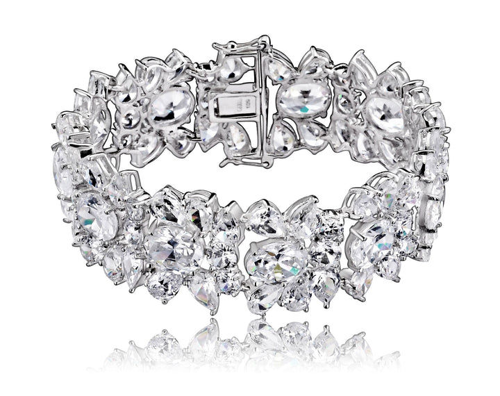 Sterling Silver Cubic Zirconia Wide Floral Bracelet