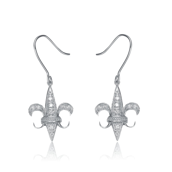 Sterling Silver Cubic Zirconia Fleur-De-Lis Drop Earrings