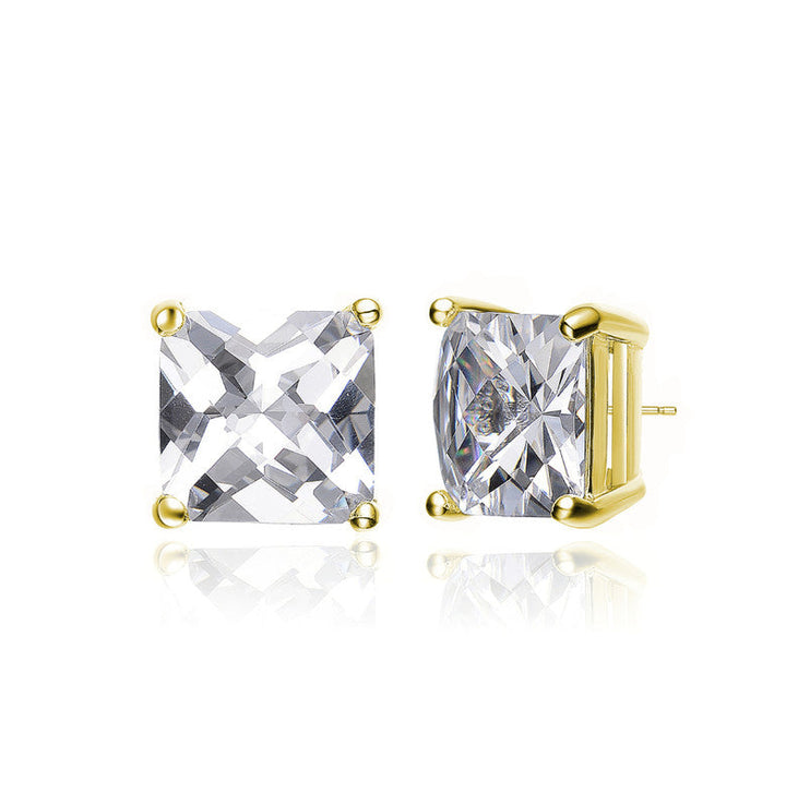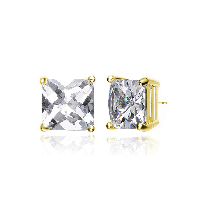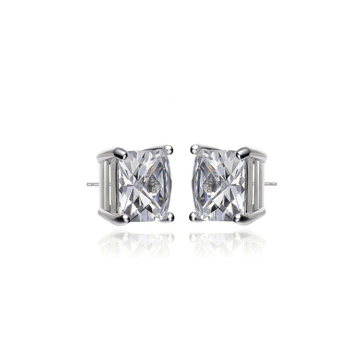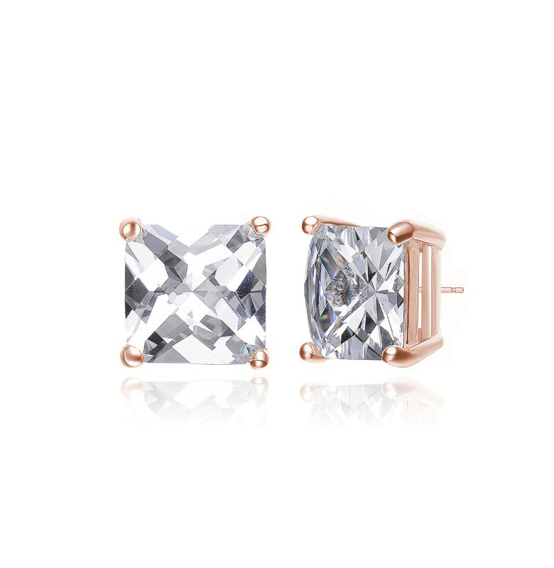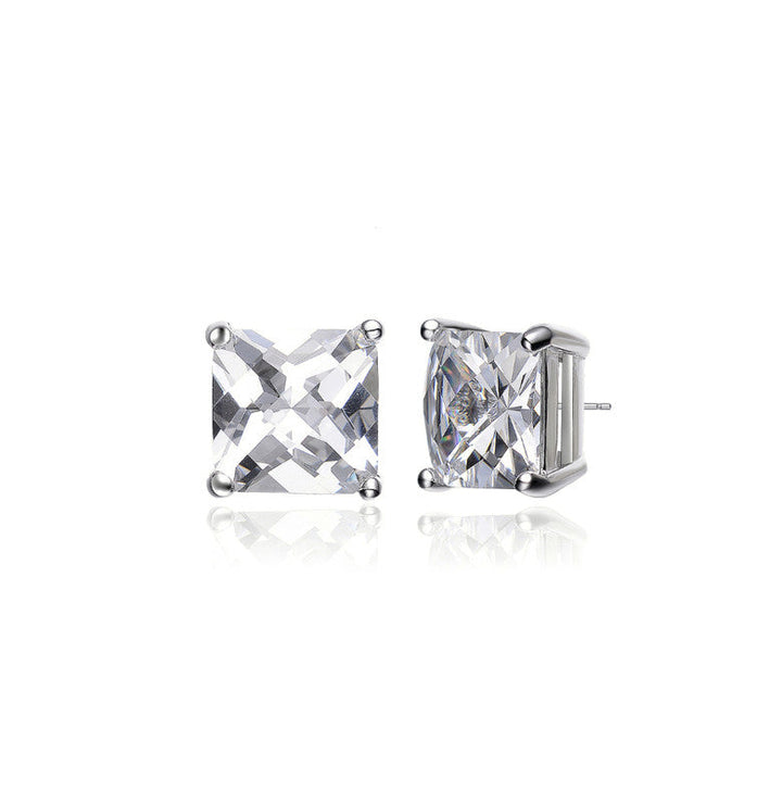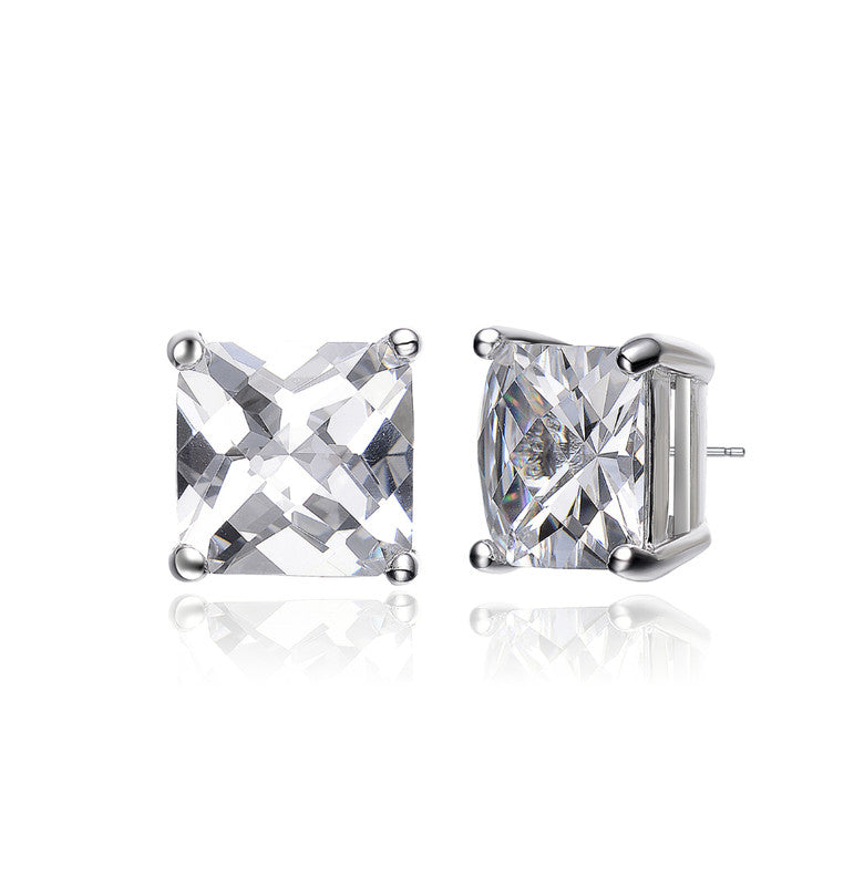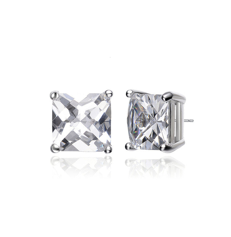 Sterling Silver Cubic Zirconia Square Stud Earrings