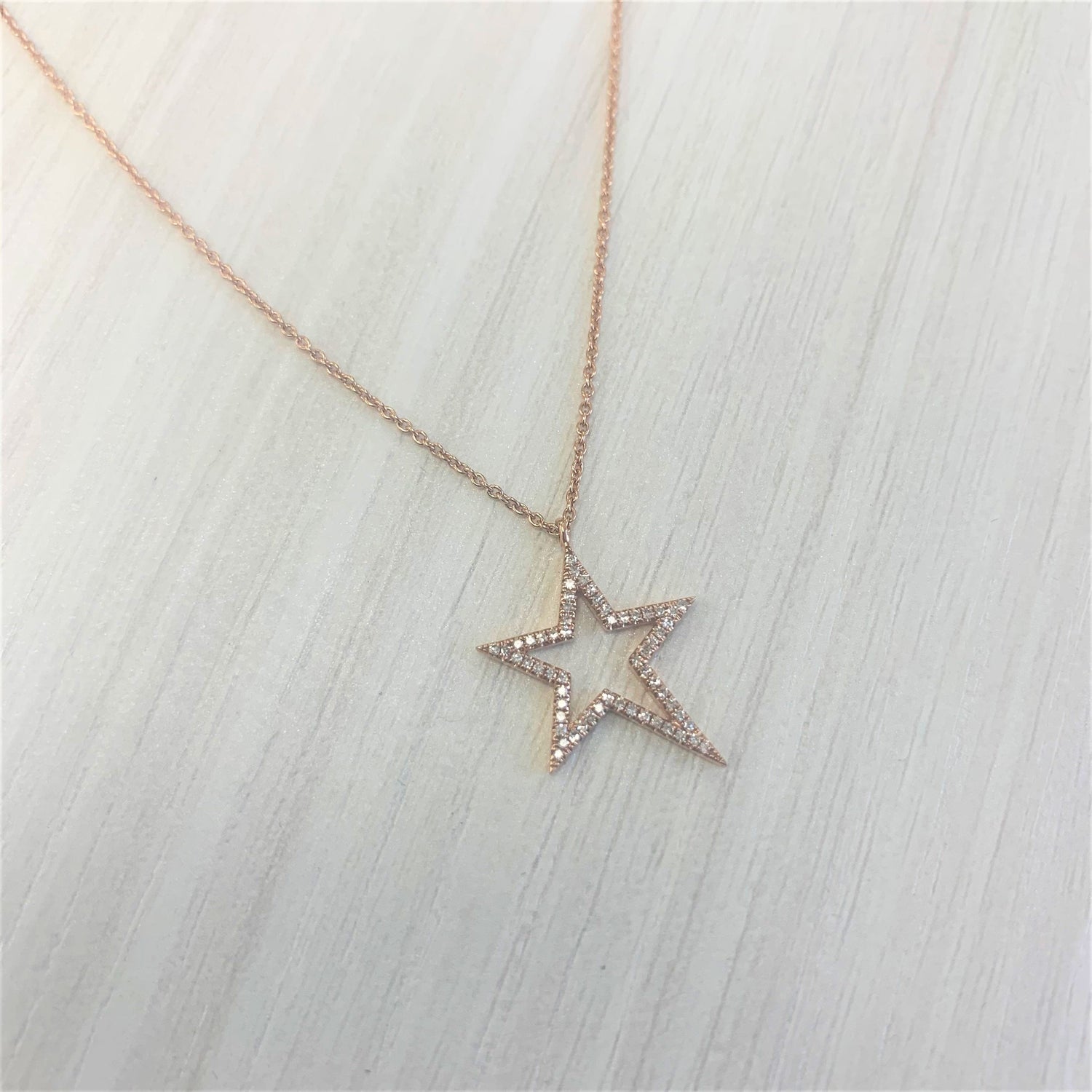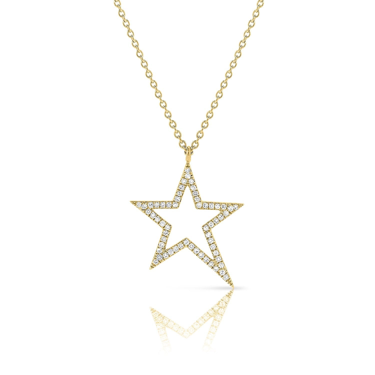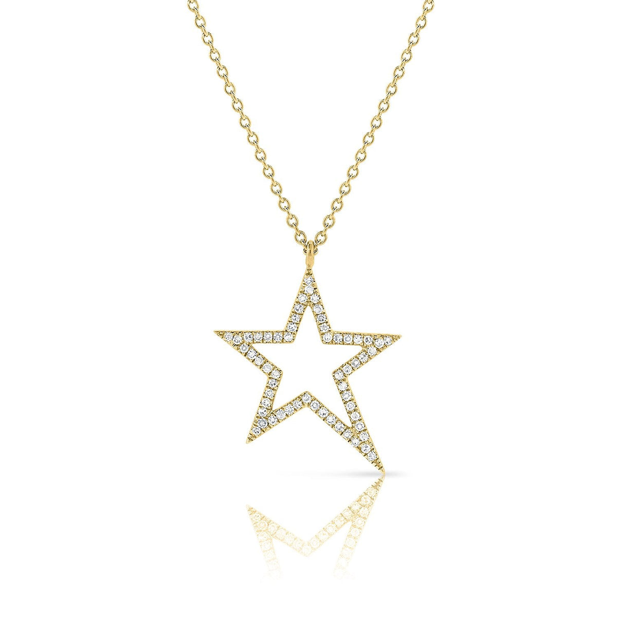 Crafted in 14K gold for a timeless look. Features an open star pendant adorned with 0.20 ct. total diamond weight. Secured with a fine chain for effortless wear.