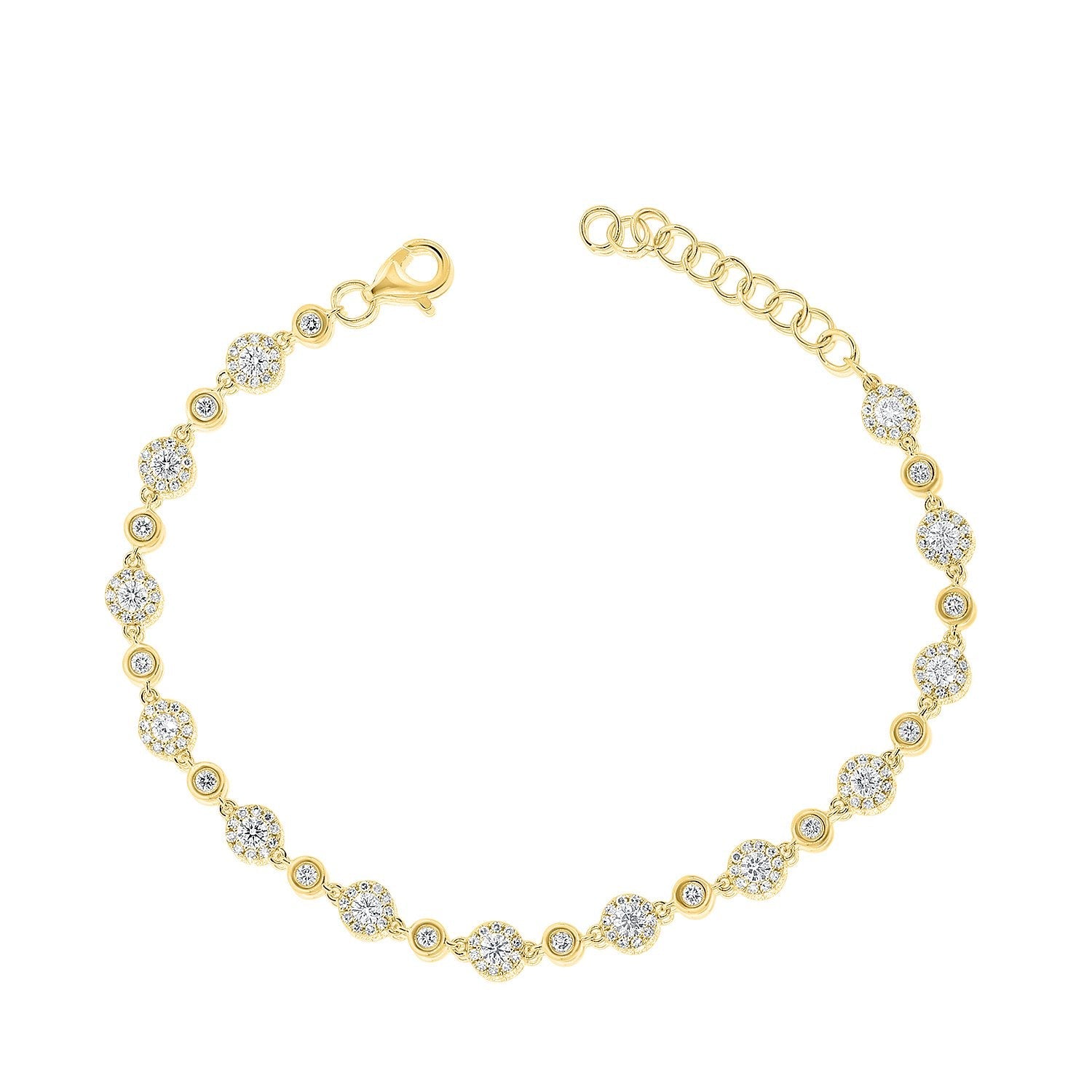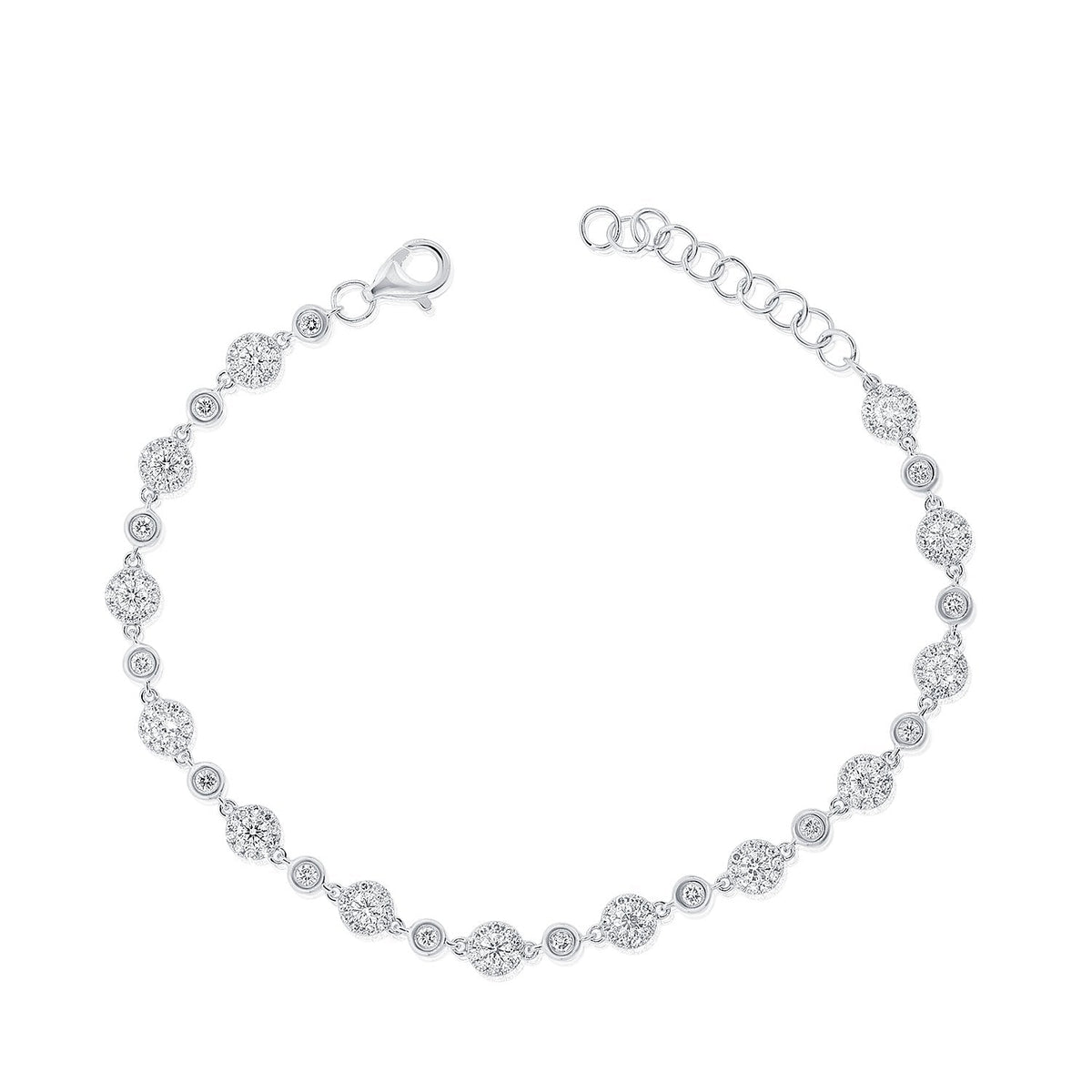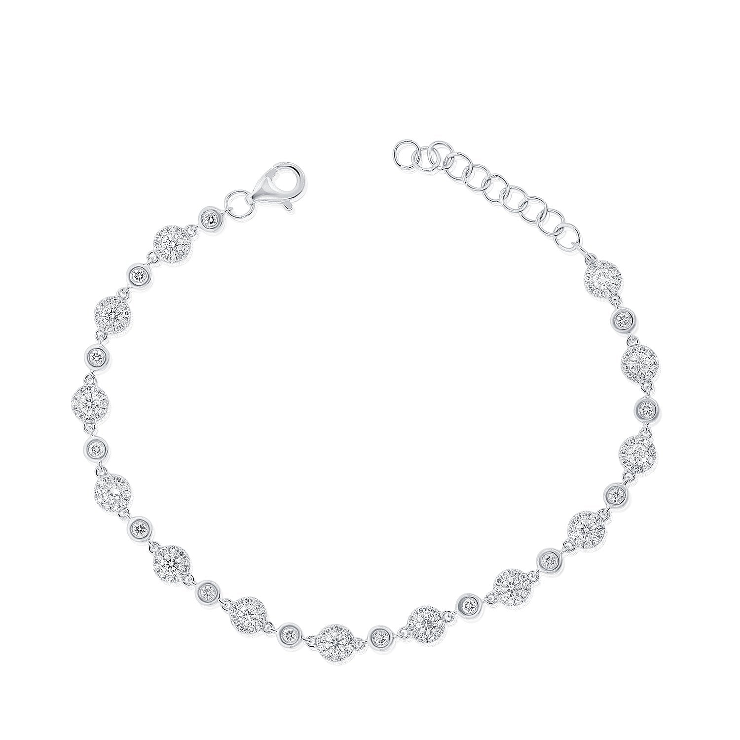 Made in 14K gold for a refined and luxurious look. Set with 1.42 ct. total diamond weight across 156 diamonds. Designed with a secure clasp for a comfortable and elegant fit.