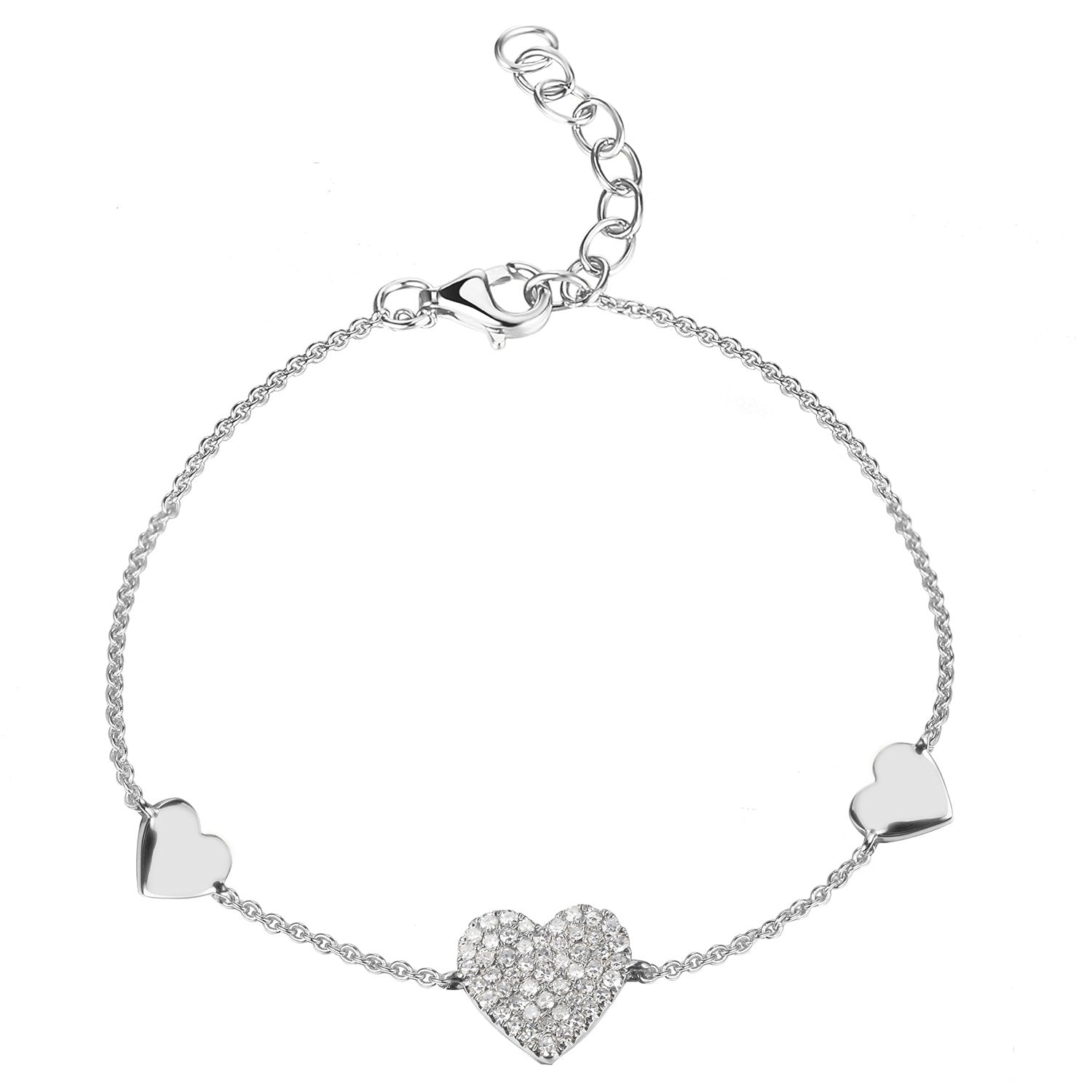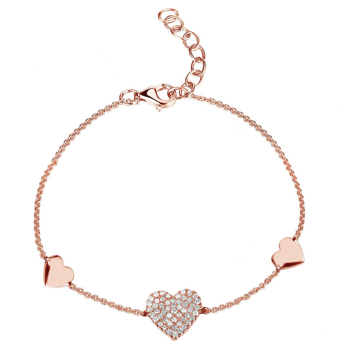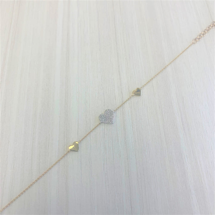This 14K Gold & Diamond Heart Bracelet by Sabrina Designs embodies love and elegance with its delicate triple-heart motif. A timeless expression of romance, this bracelet is perfect for gifting or adding sentimental charm to any jewelry collection.