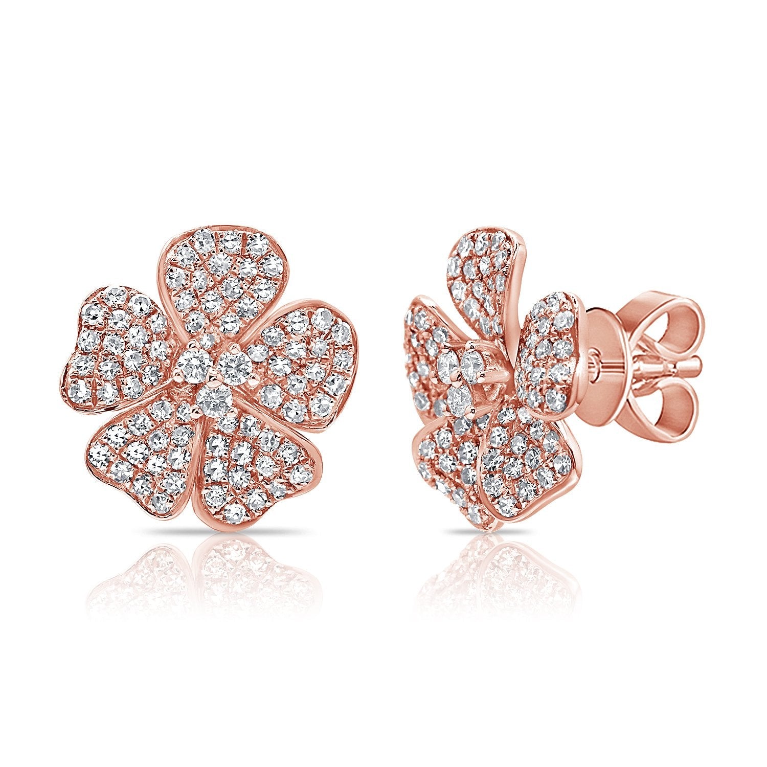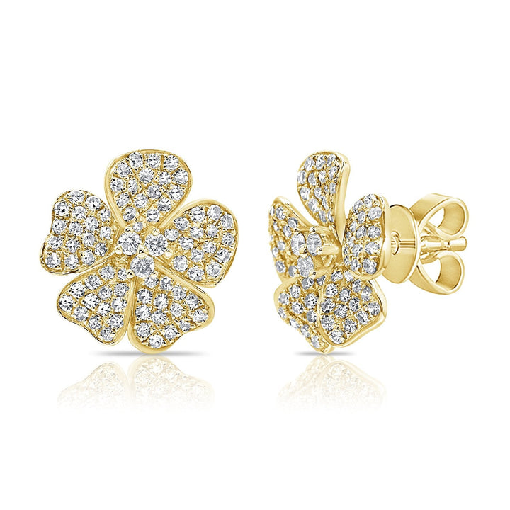 Made in 14K gold for a polished, luxurious finish. Set with 0.57 ct. total diamond weight for radiant sparkle. Designed as a classic floral stud for everyday wear. Secured with a comfortable post-back closure.