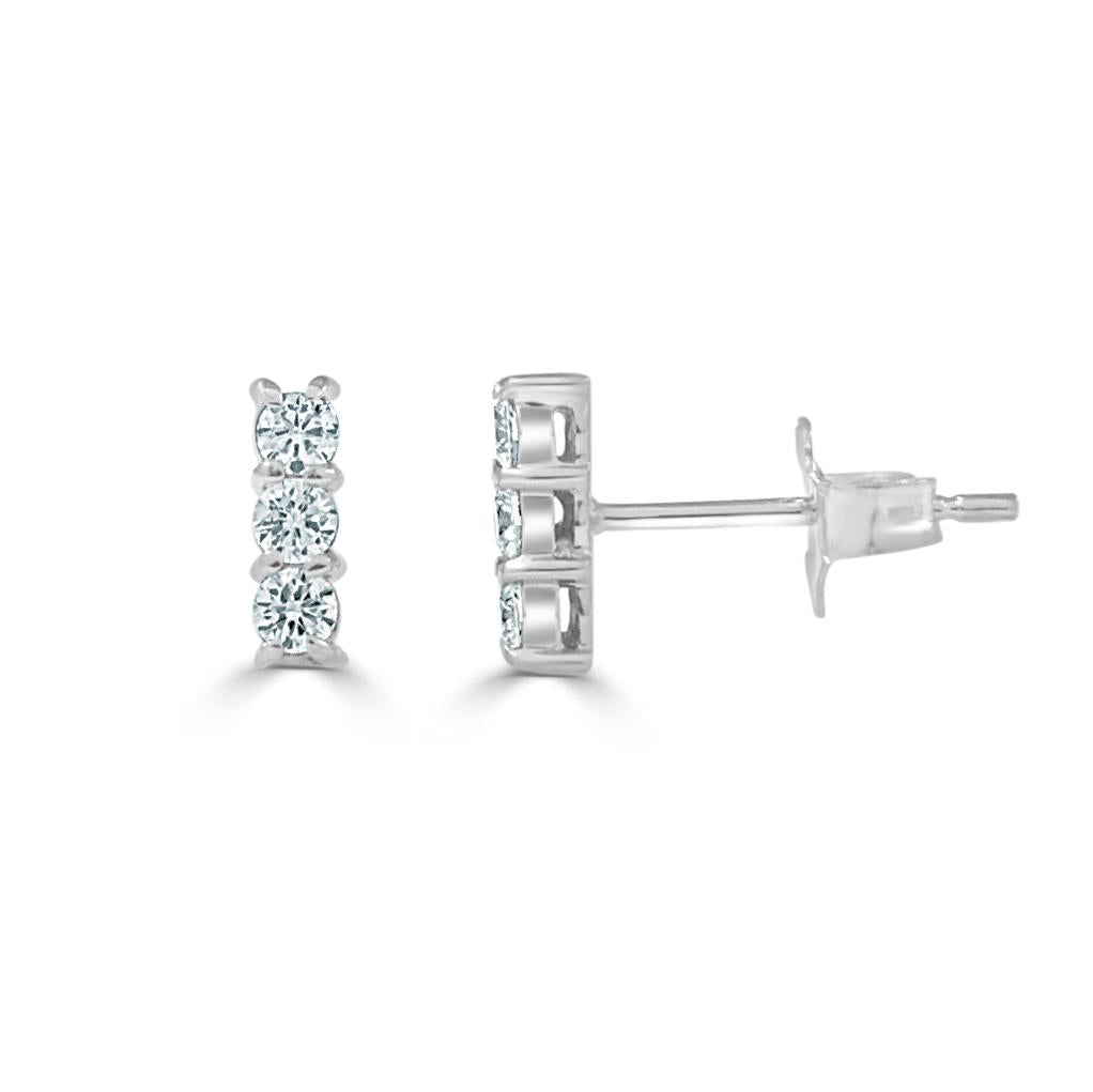 Crafted in 14K gold for a modern and luxurious finish. Features six natural round diamonds with a total weight of 0.25 ct. (G-H color, SI1 clarity). Measures approximately 0.05' in width and 0.2' in length. Secured with butterfly push-back closures.