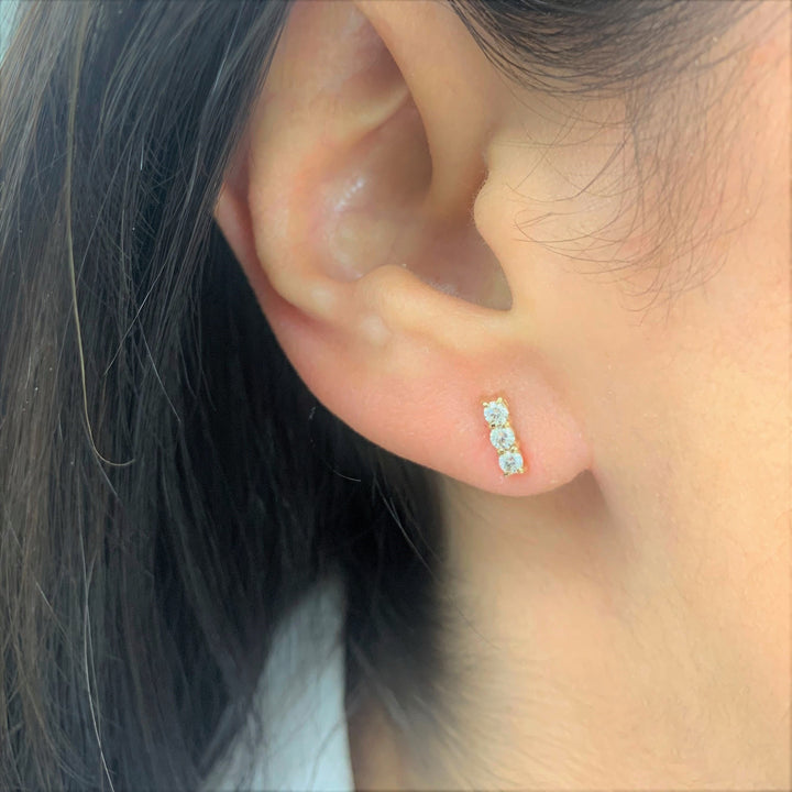 These 14K Gold & Diamond Bar Stud Earrings by Sabrina Designs offer a contemporary twist on a classic stud. The sleek three-stone design provides just the right amount of sparkle, making them an effortless everyday accessory. Available in white, yellow, and rose gold.