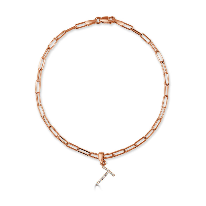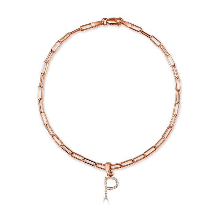 This 14K Rose Gold & Diamond Initial Link Bracelet by Sabrina Designs offers a blend of personalization and elegance. The dainty paperclip link chain is adorned with a diamond-accented initial, creating a timeless keepsake piece.