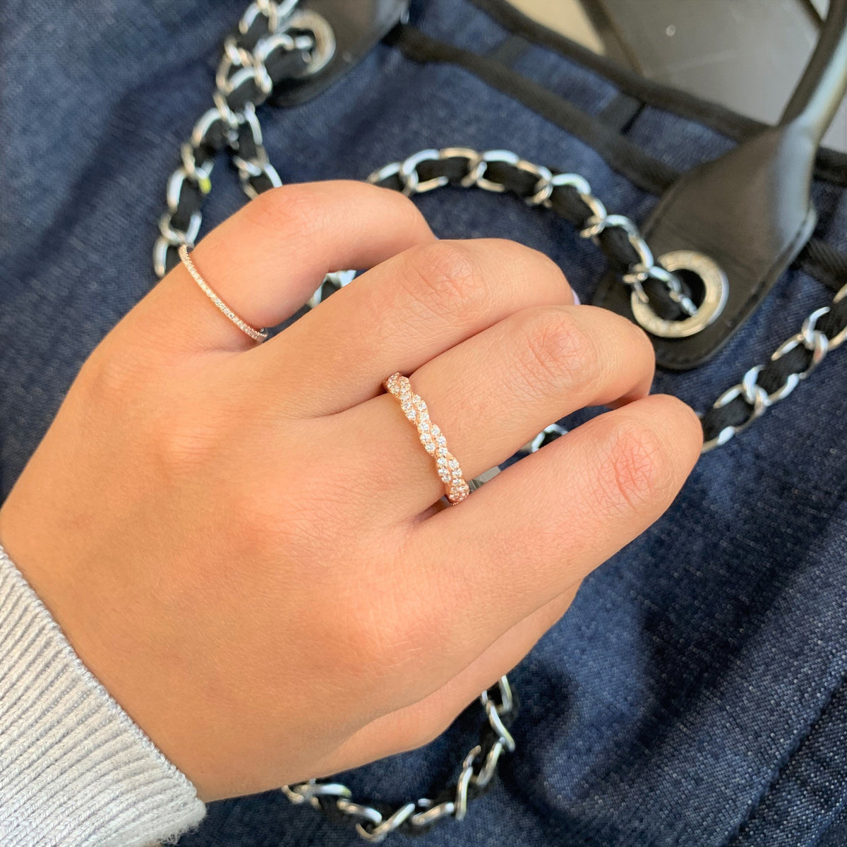 This 14K Gold & Diamond Stackable Twist Ring by Sabrina Designs blends classic elegance with contemporary design. The delicate twisted band is lined with diamonds, offering a refined sparkle for a minimalist yet luxurious aesthetic.