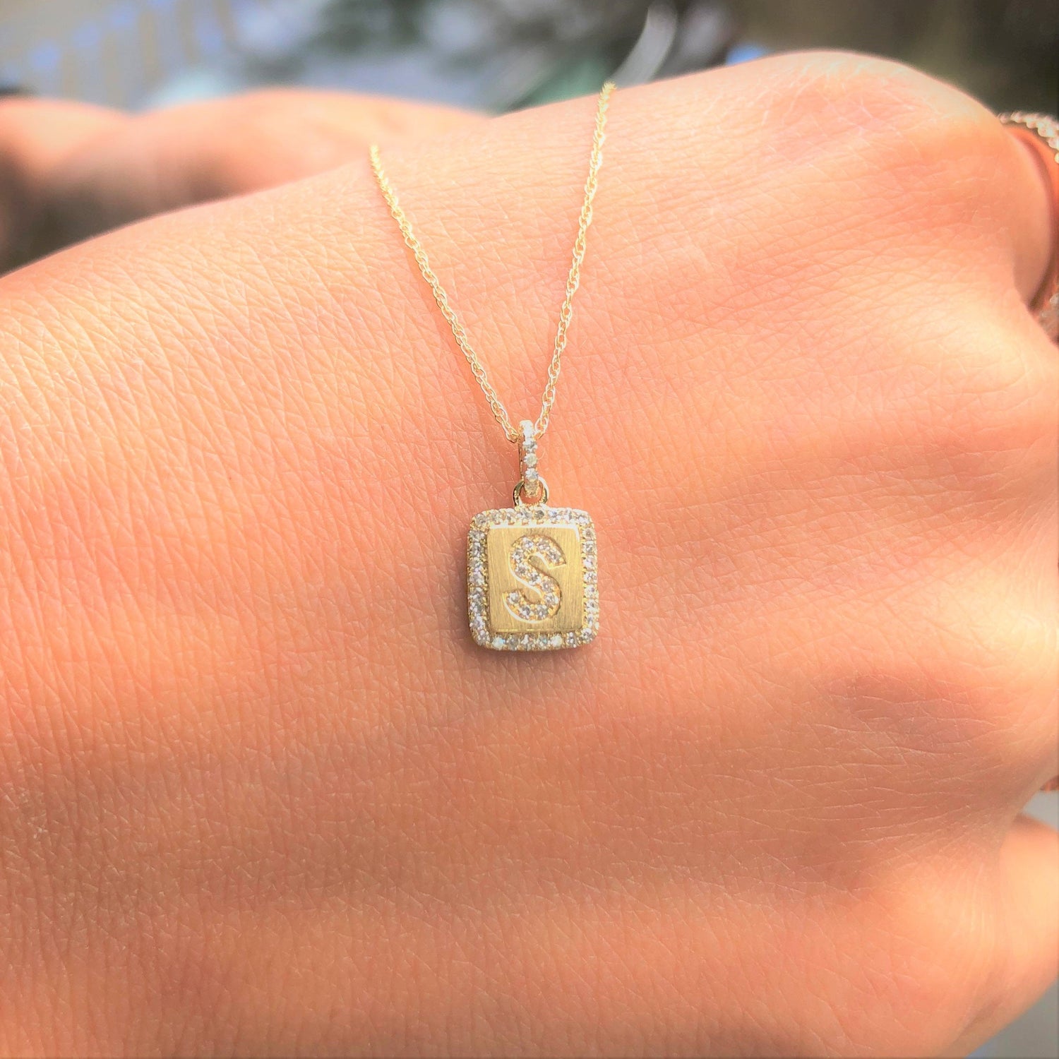 Handcrafted in 14K gold with diamond accents ranging from approximately 0.12 to 0.15 carats, depending on the letter.