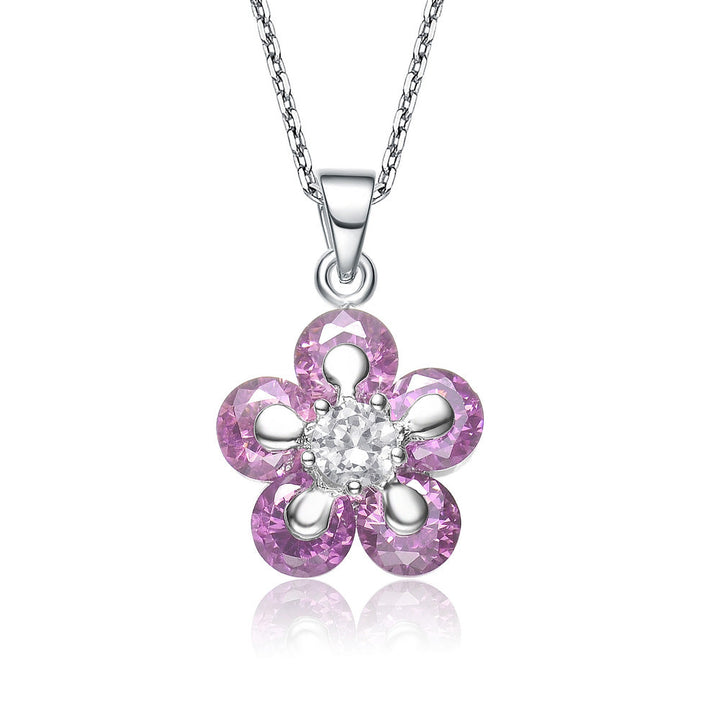 Sterling Silver Pink Cubic Zirconia Flower Charm Necklace
