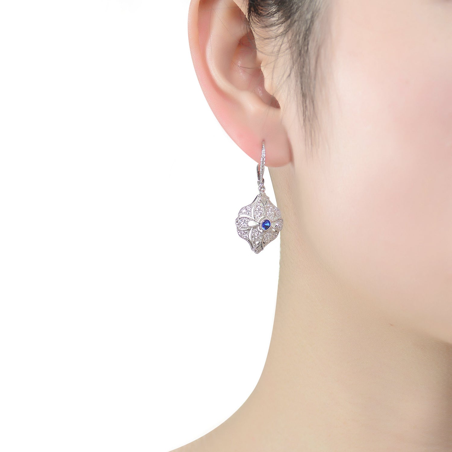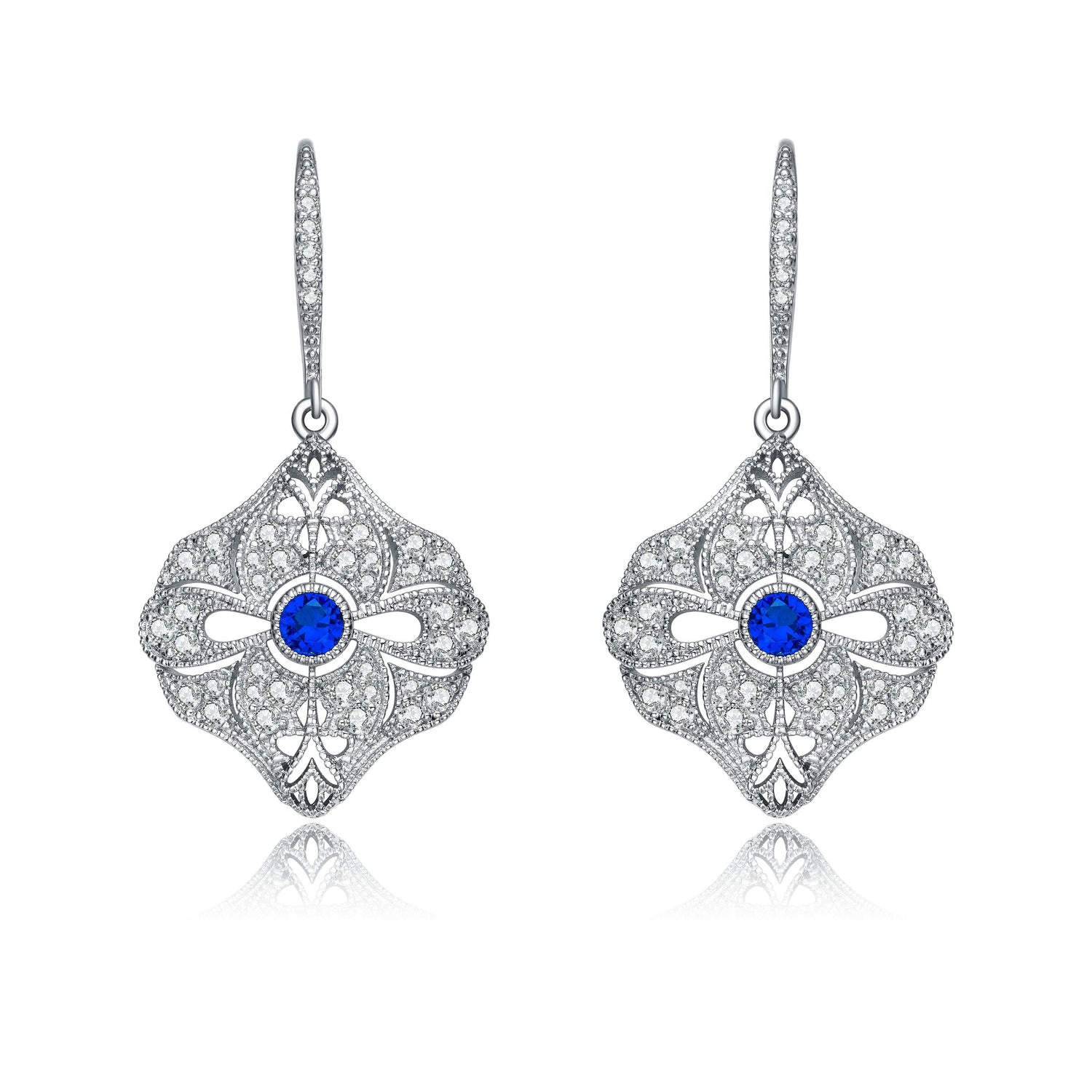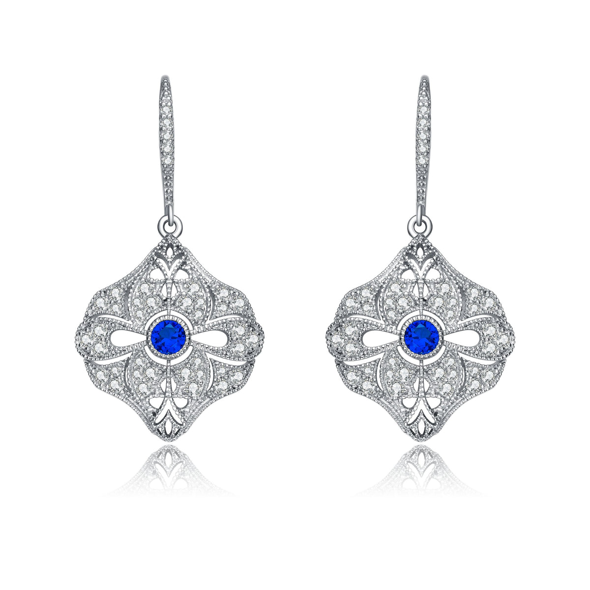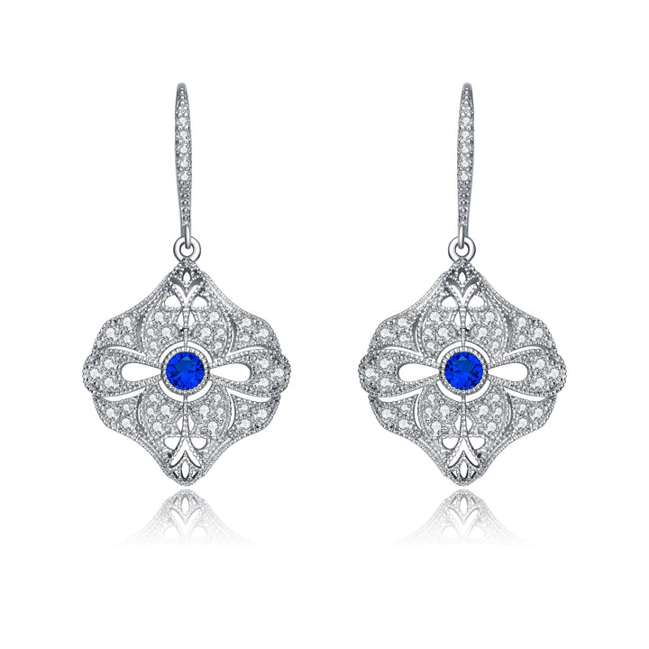 Sterling Silver Sapphire Cubic Zirconia Wreath Drop Earrings