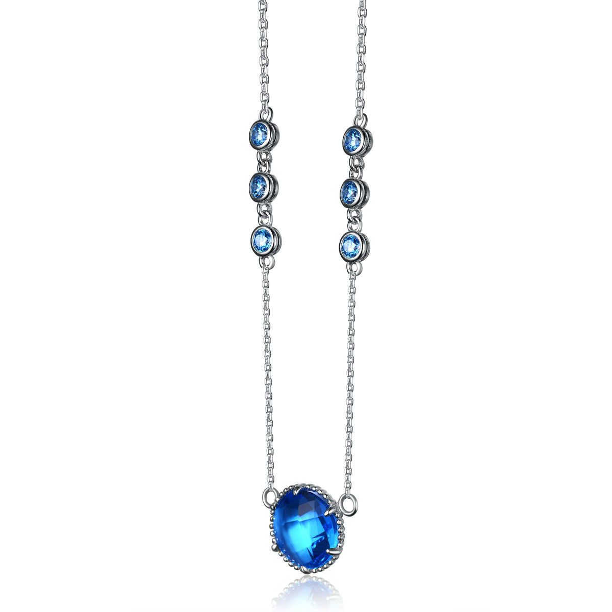 Sterling Silver Blue Topaz Cubic Zirconia Charm Necklace