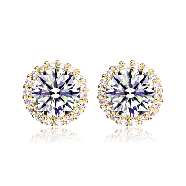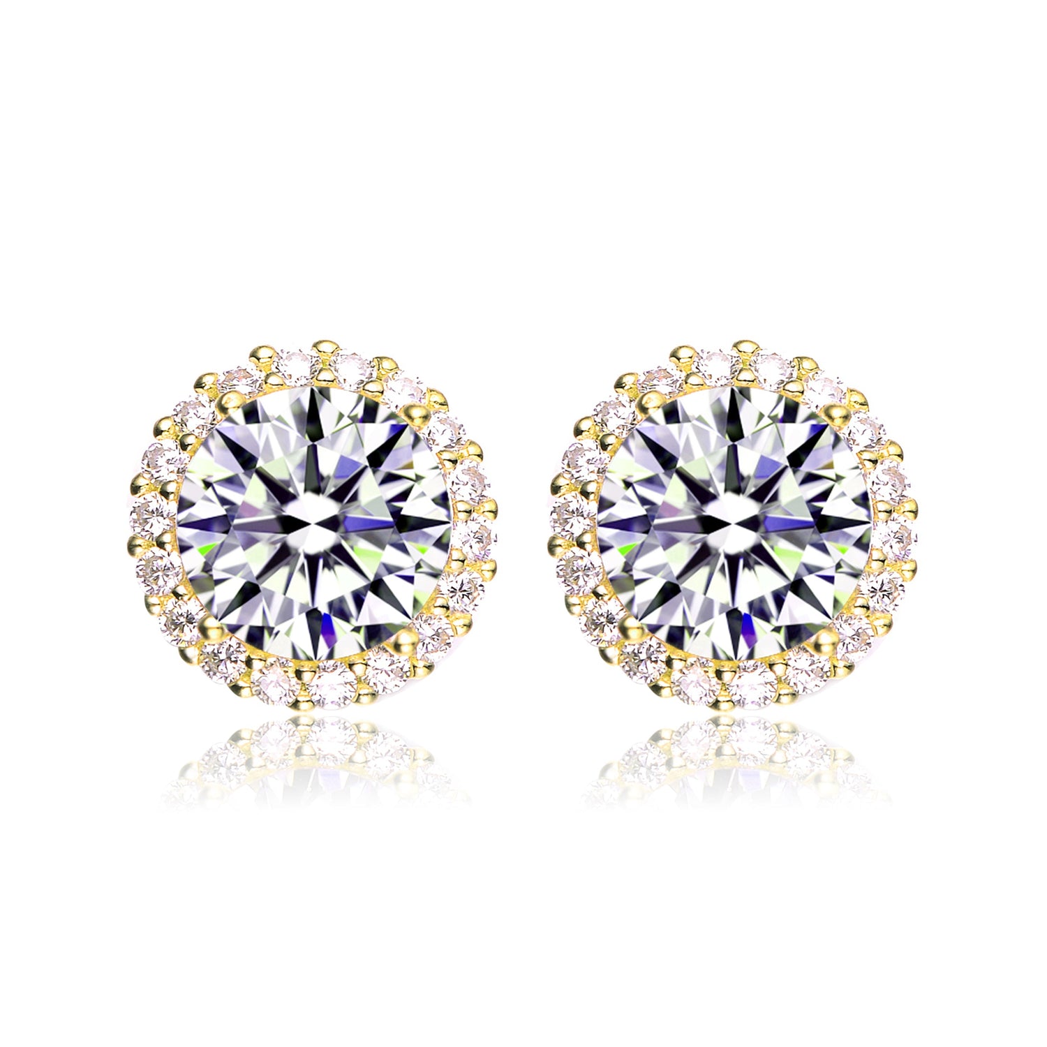 Sterling Silver Gold Plated Cubic Zirconia Button Stud Earrings