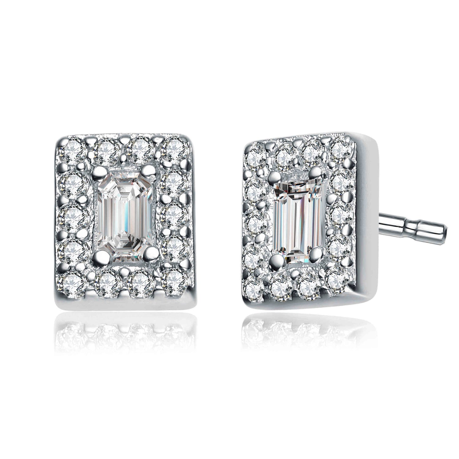 Sterling Silver Cubic Zirconia Square Stud Earrings