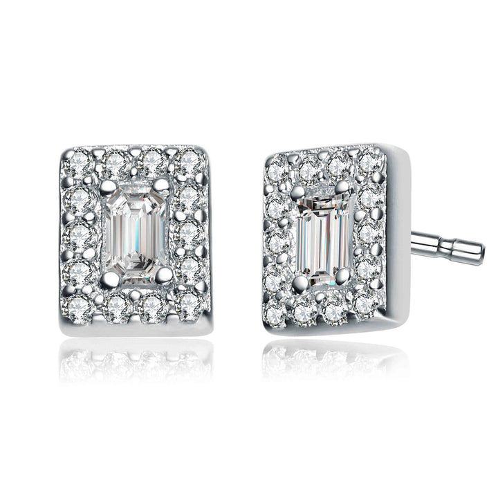 Sterling Silver Cubic Zirconia Square Stud Earrings