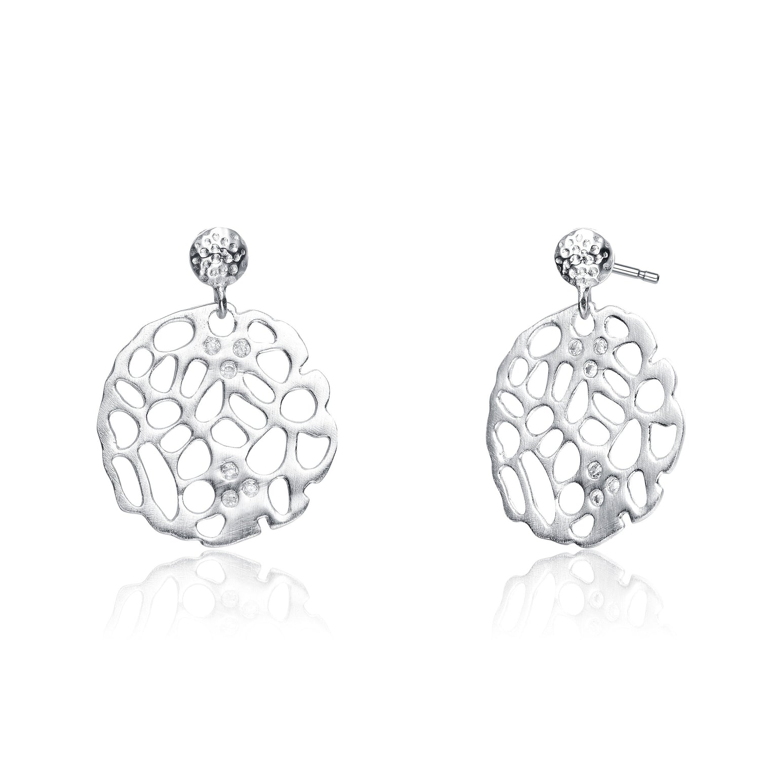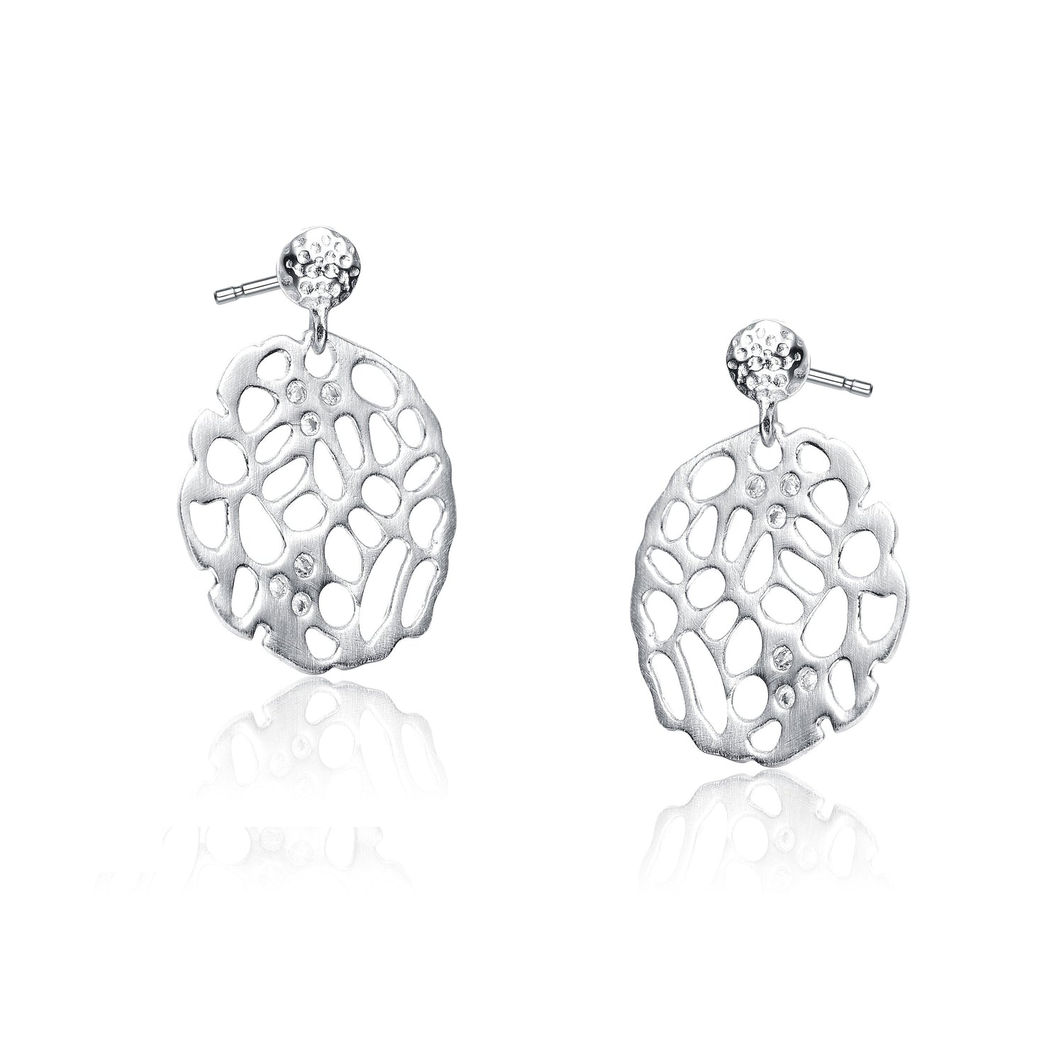 Sterling Silver Cubic Zirconia Matte Brushed Filigree Earrings