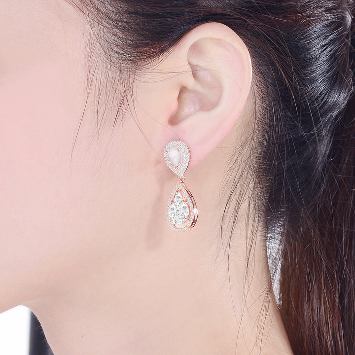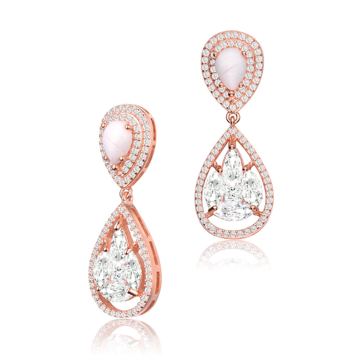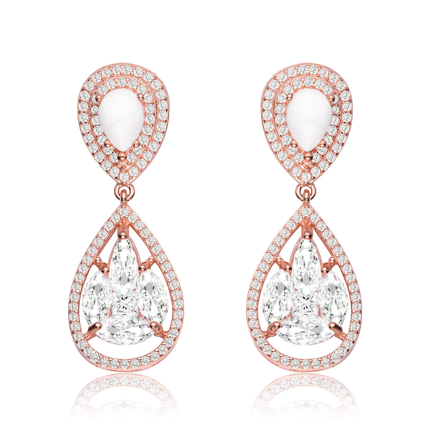Sterling Silver Rose Gold Plated Howlite Cubic Zirconia Halo Drop Earrings