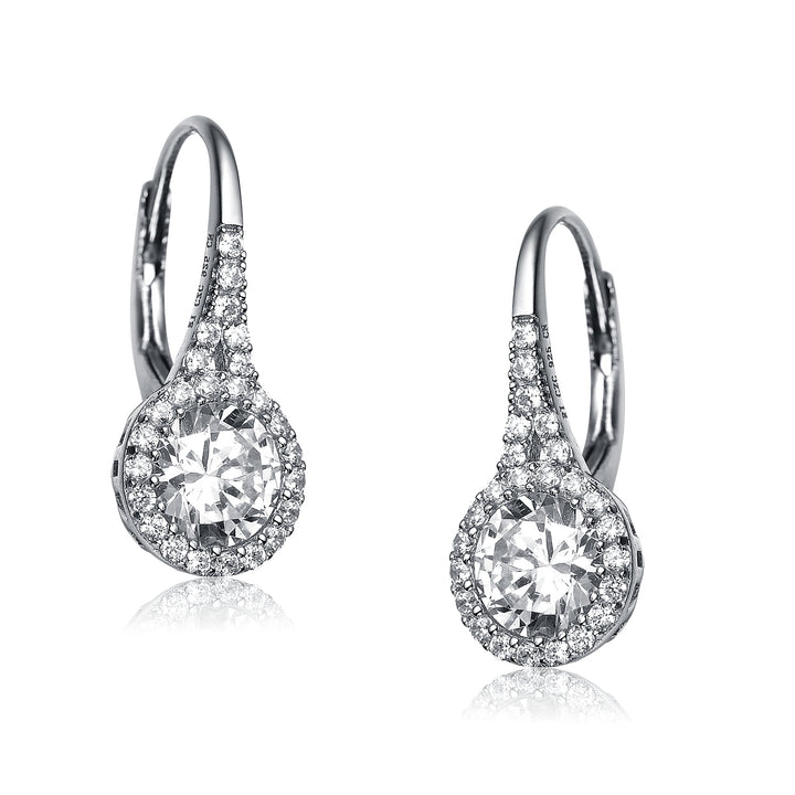 Sterling Silver Cubic Zirconia Halo Leverback Drop Earrings