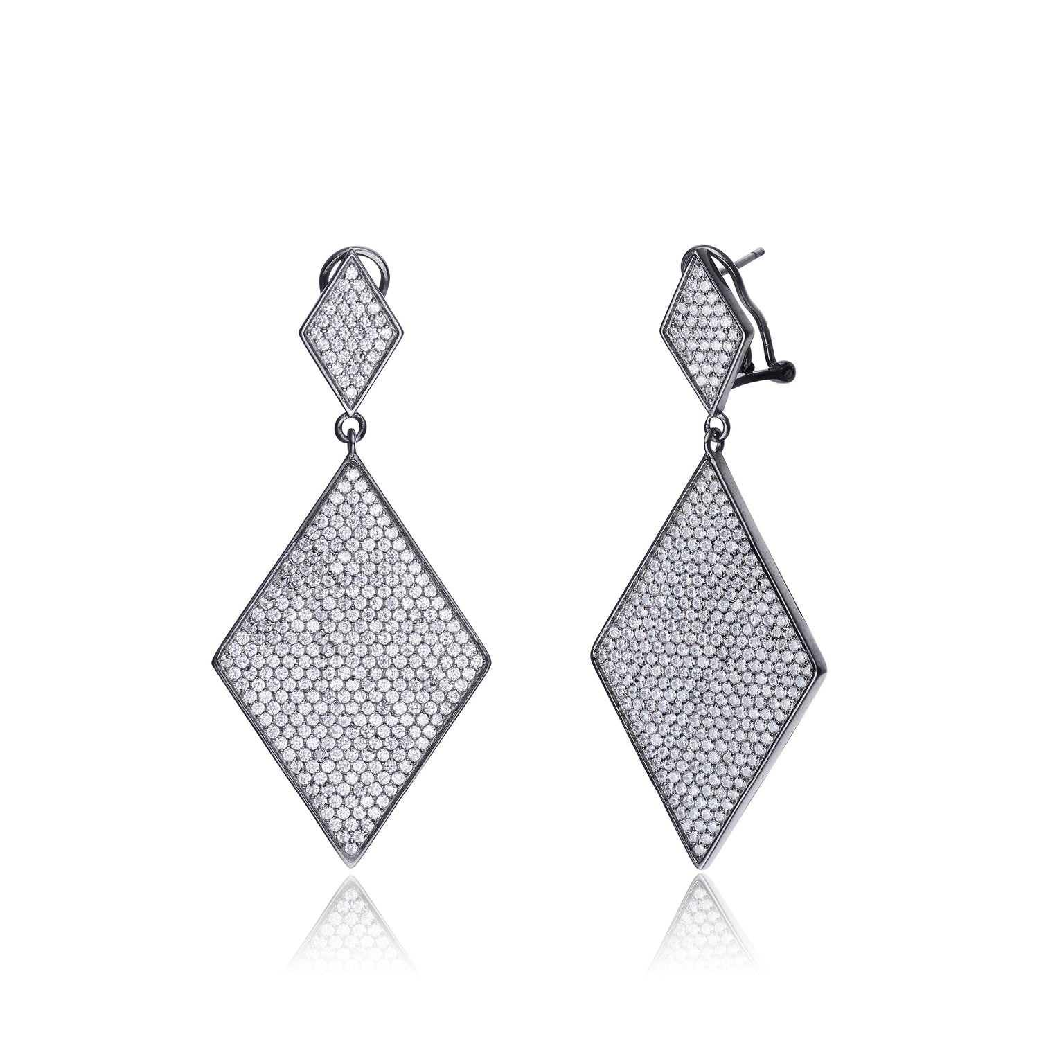 Sterling Silver Black Plated Cubic Zirconia Pave Drop Earrings