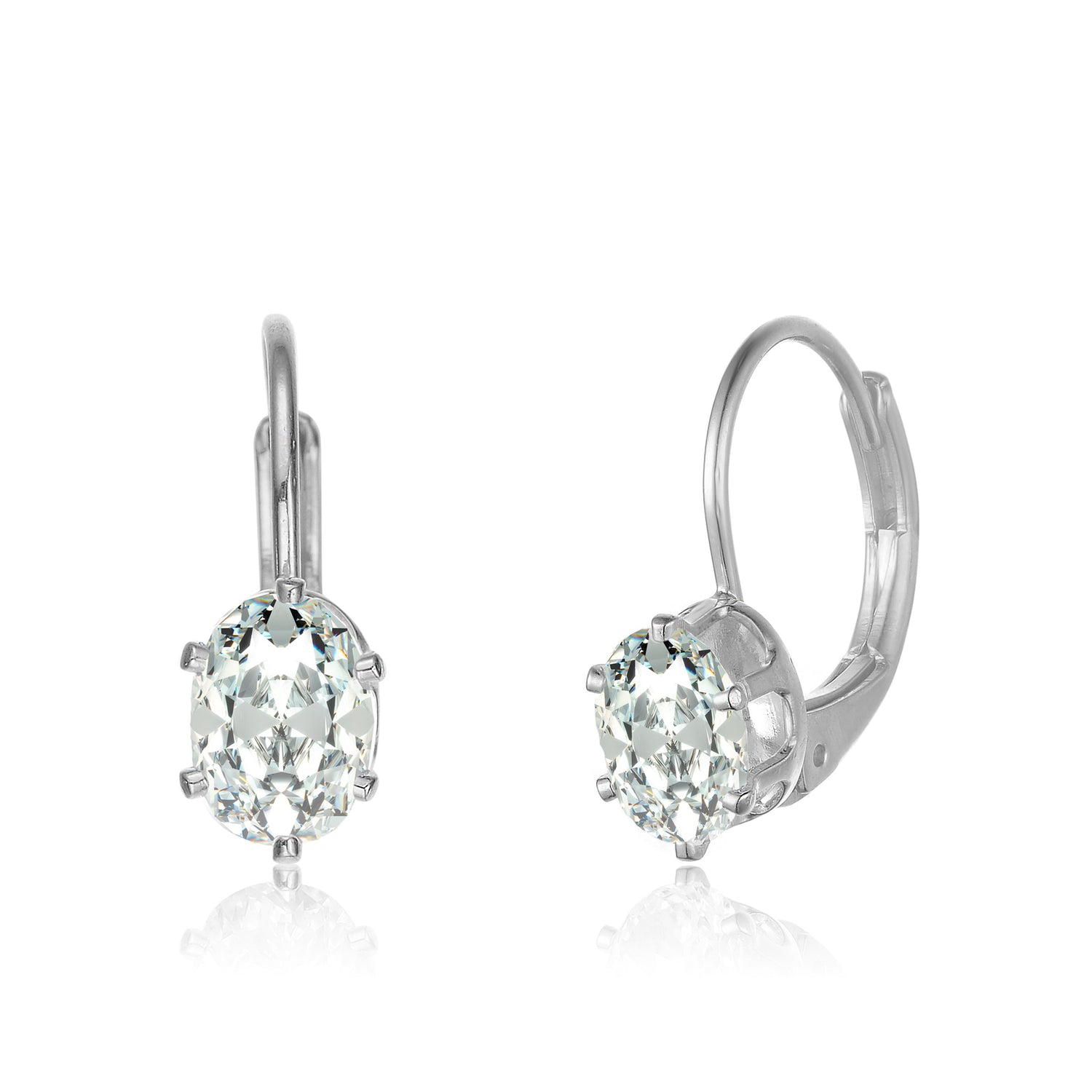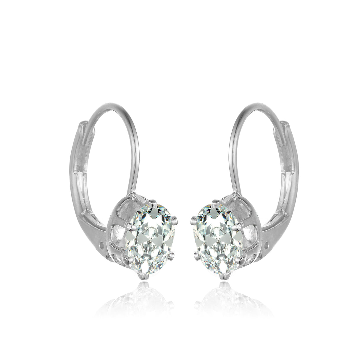 These Sterling Silver Cubic Zirconia Leverback Drop Earrings by Genevive are a classic choice for any jewelry lover. The oval clear cubic zirconia solitaire is the focal point of these lever-back earrings, offering a simple yet elegant design. Available in white gold or 14k yellow gold plating, these earrings are versatile and timeless.