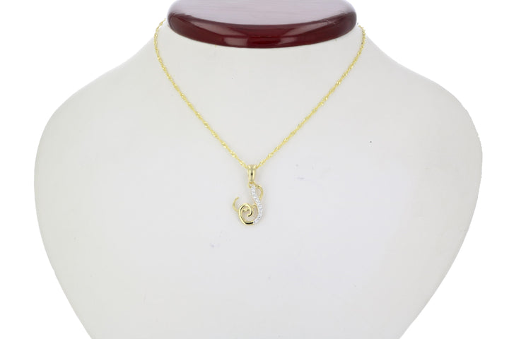 Crafted in 14K yellow gold with 1/20 cttw (0.05 cttw) of natural round diamonds (10 stones). The diamonds have I-J color and I2-I3 clarity. The pendant measures 13mm wide and 15mm long. The necklace features an 18-inch sterling silver chain.