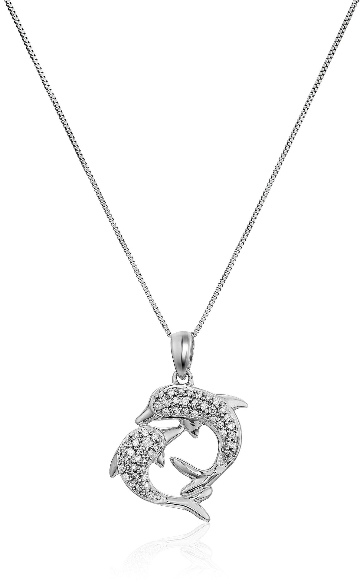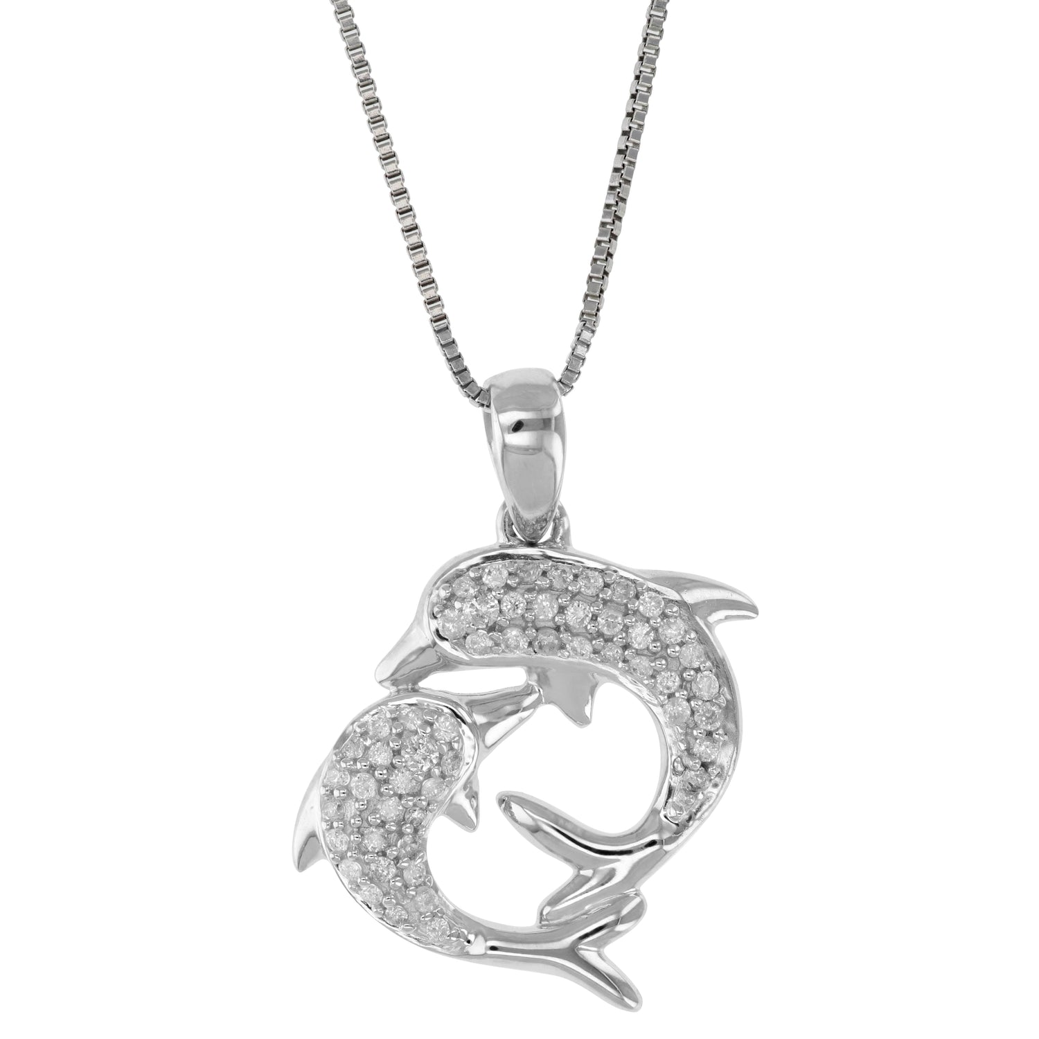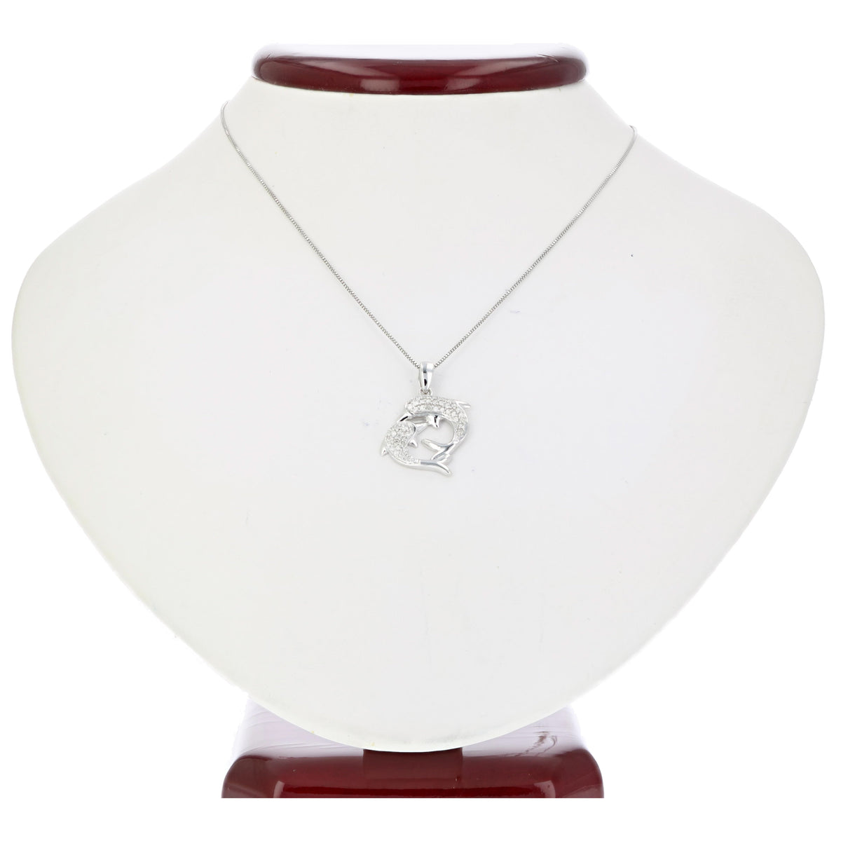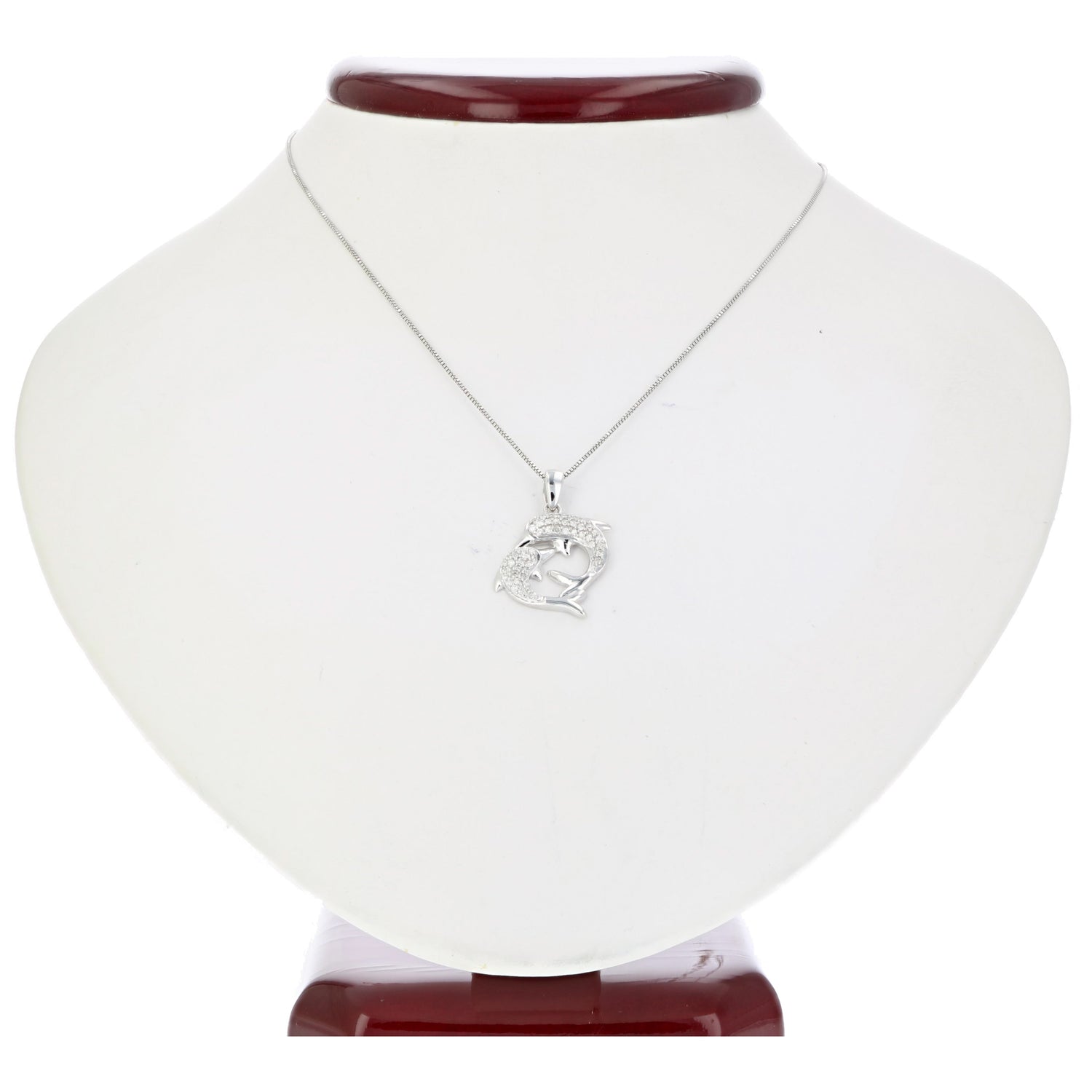 1/6 cttw Diamond Dolphin Pendant Necklace 14K White Gold with 18 Inch Chain