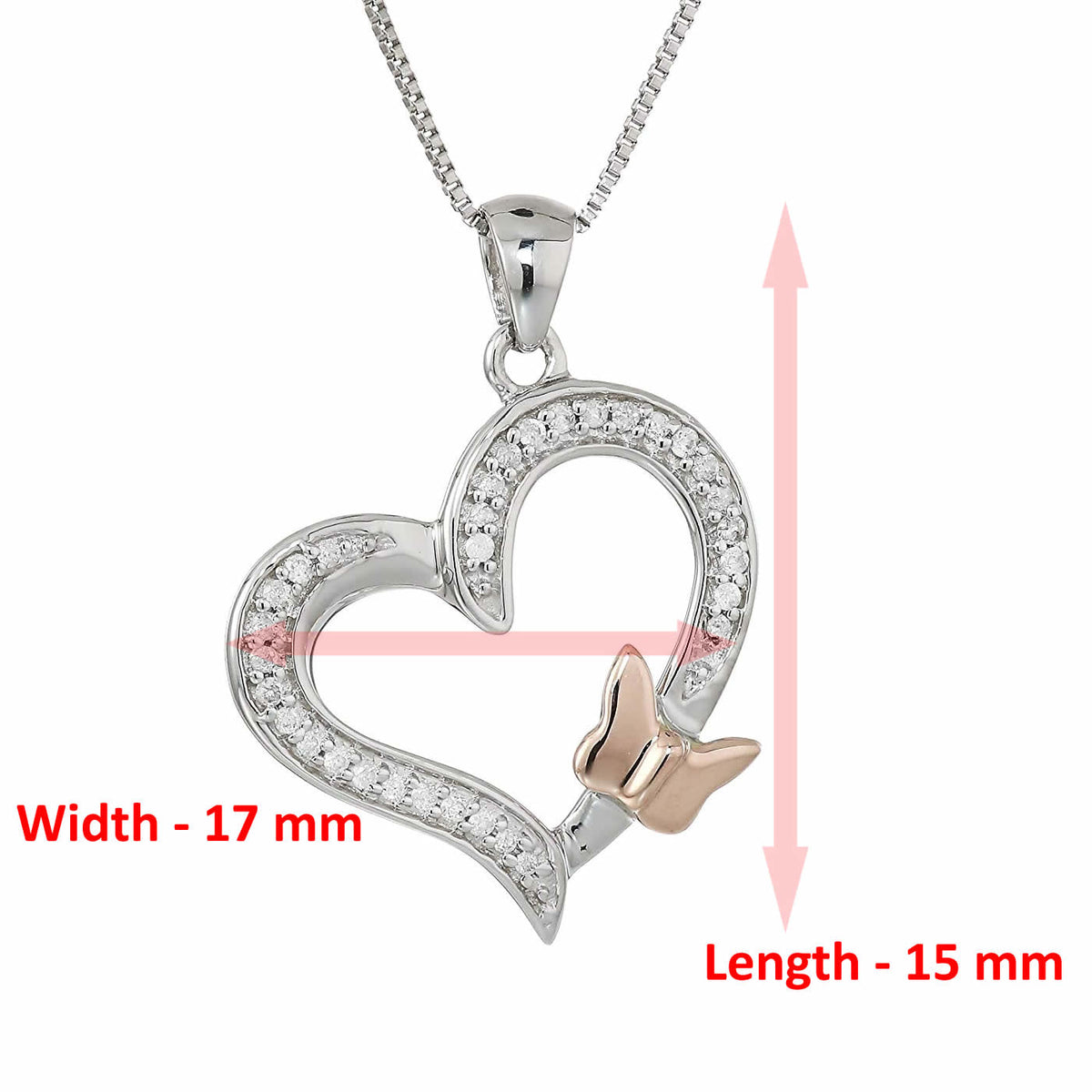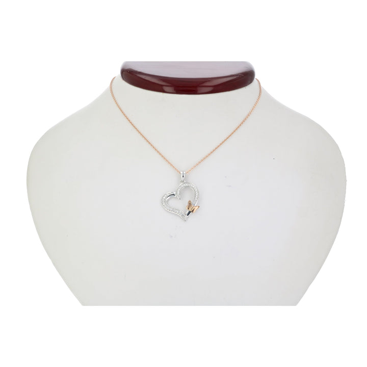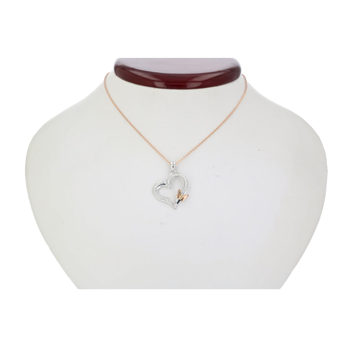 1/10 cttw Diamond Butterfly and Heart Pendant 14K White and Rose Gold with Chain