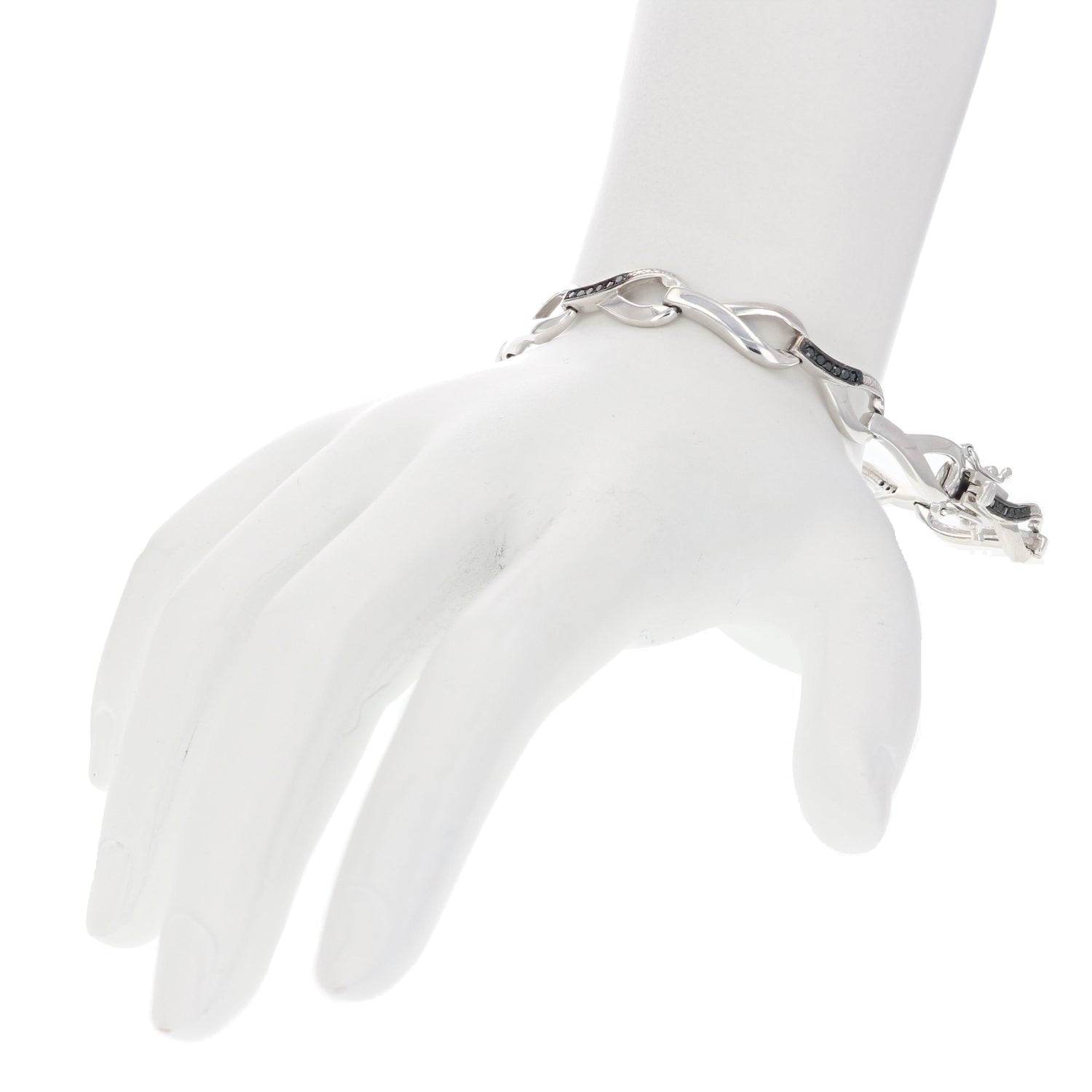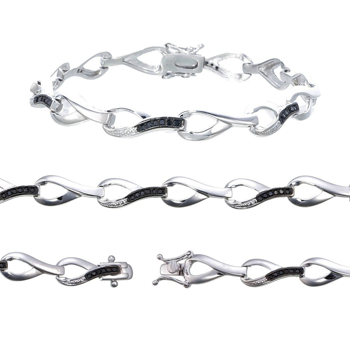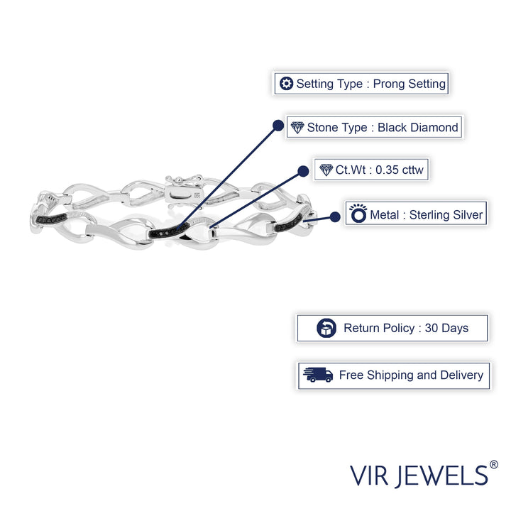 0.35 cttw Black Diamond Bracelet .925 Sterling Silver With Rhodium Infinity