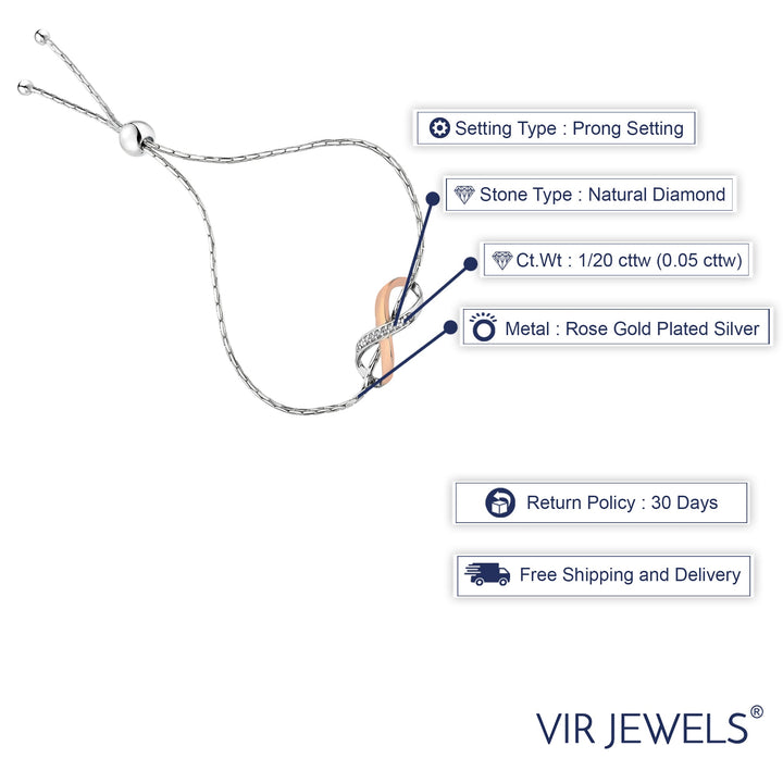 1/20 cttw Diamond Bolo Bracelet Rose Gold Plated over Sterling Silver Infinity
