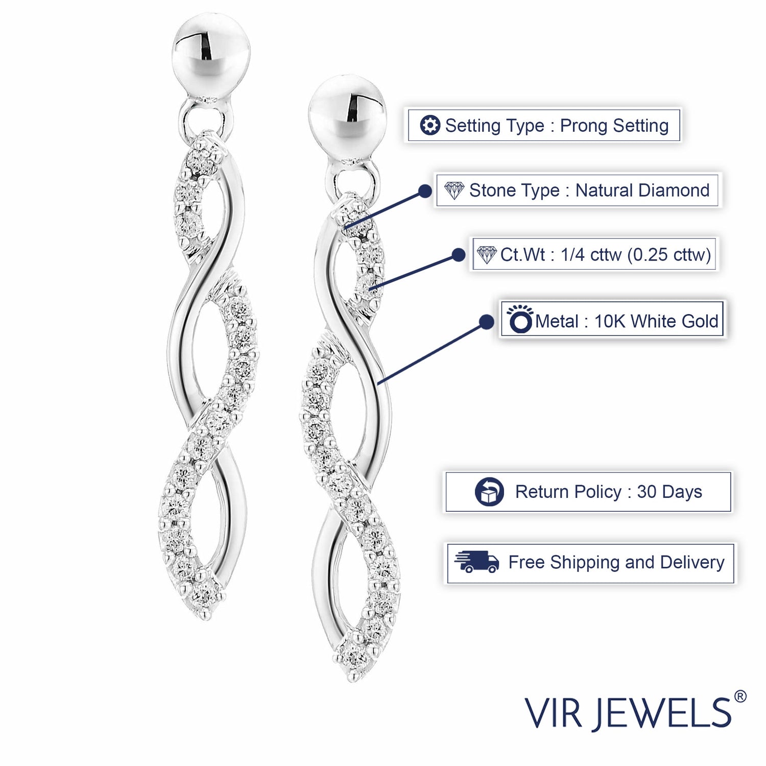1/4 cttw Diamond Infinity Dangle Earrings 10K White Gold 1 Inch with Push Backs