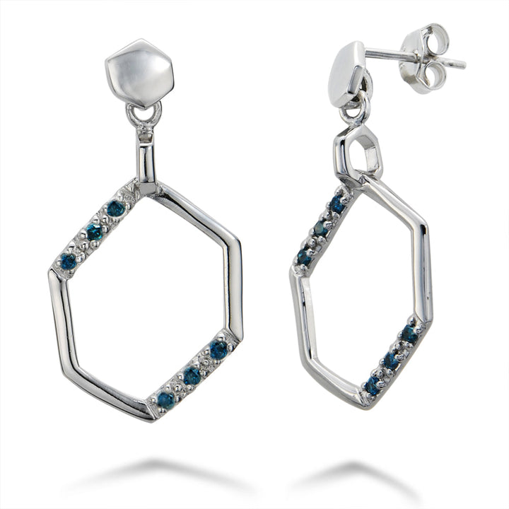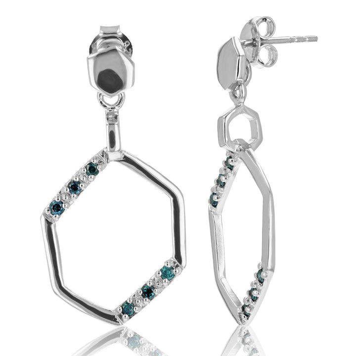 1/5 cttw Blue Diamond Dangle Earrings .925 Sterling Silver With Rhodium Plating