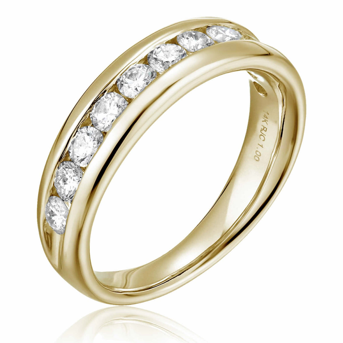 1/2 cttw Comfort Fit Diamond Wedding Band in 14K Yellow Gold Channel