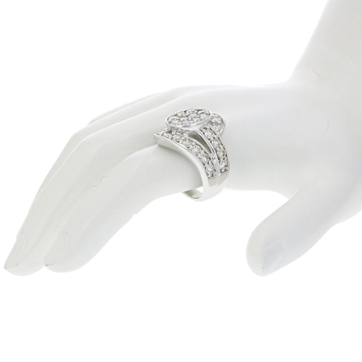 Handcrafted in 14K White Gold, featuring 34 natural round diamonds (3 cttw). Diamond Clarity: I1-I2, Diamond Color: J-K. Ring Width: 4.5 mm, Length: 21 mm.
