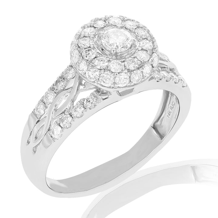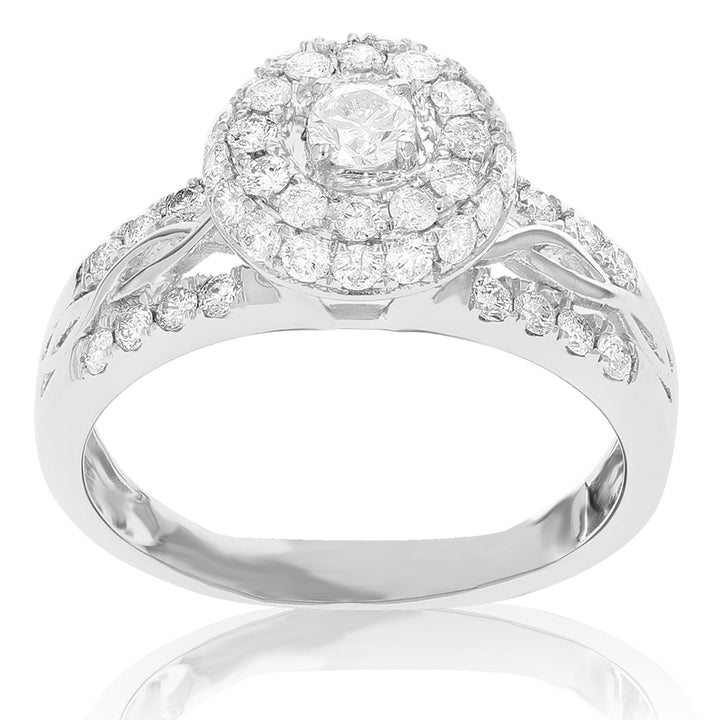 3/4 cttw Diamond Engagement Ring 14K White Gold Cluster Composite Wedding Ring