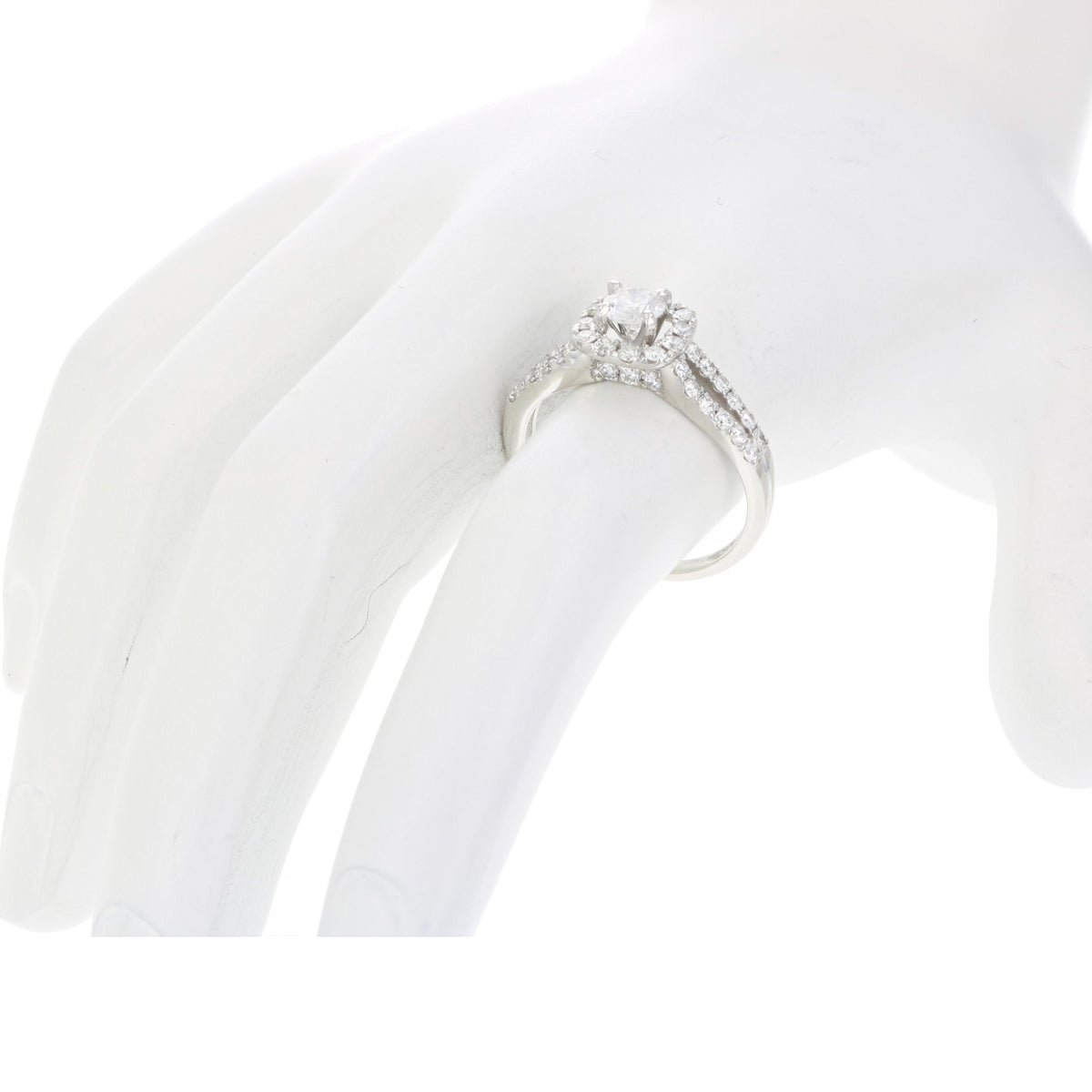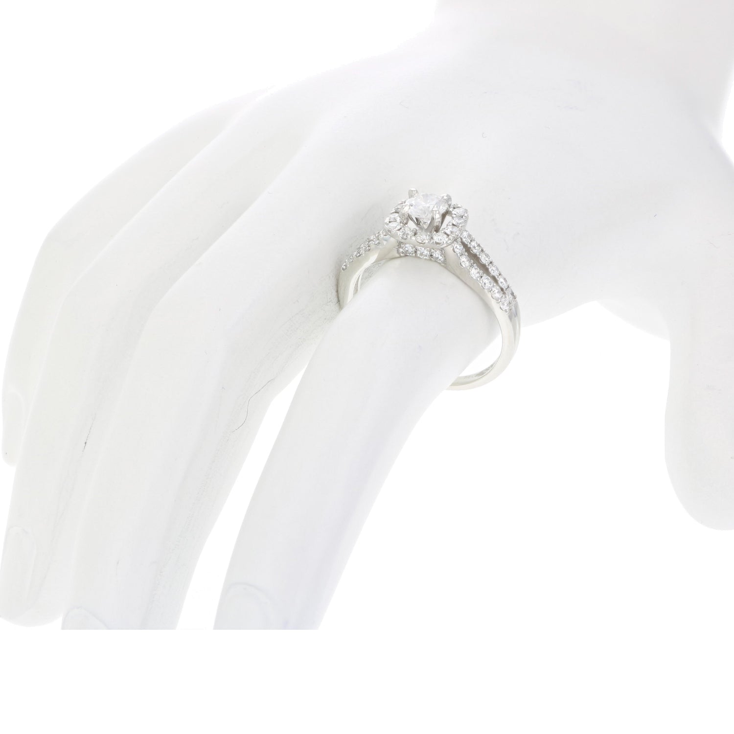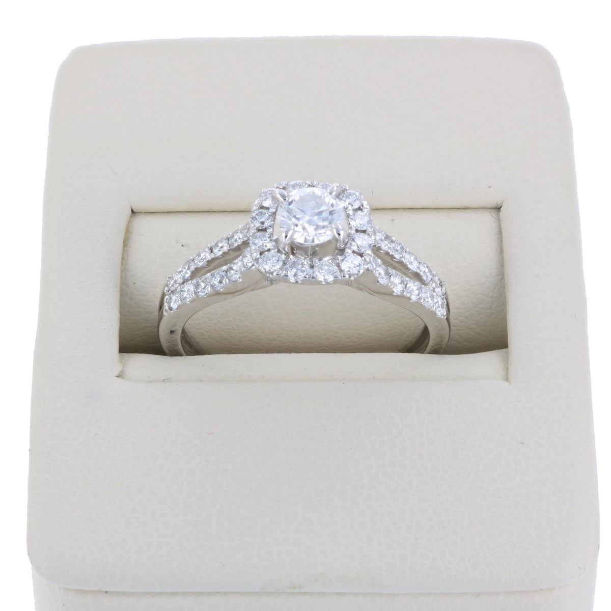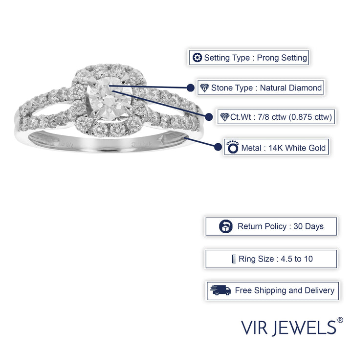 7/8 cttw Diamond Wedding Engagement Ring 14K White Gold Halo Bridal Style
