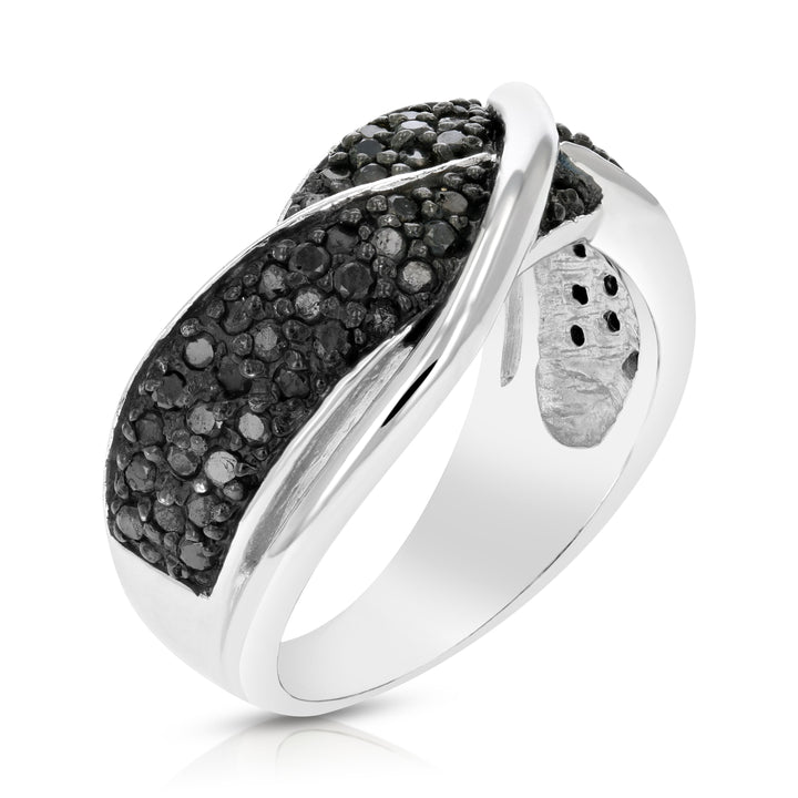 Handcrafted in .925 Sterling Silver with Rhodium plating, featuring 56 natural round black diamonds (3/4 cttw). Diamond Clarity: I1-I2.
