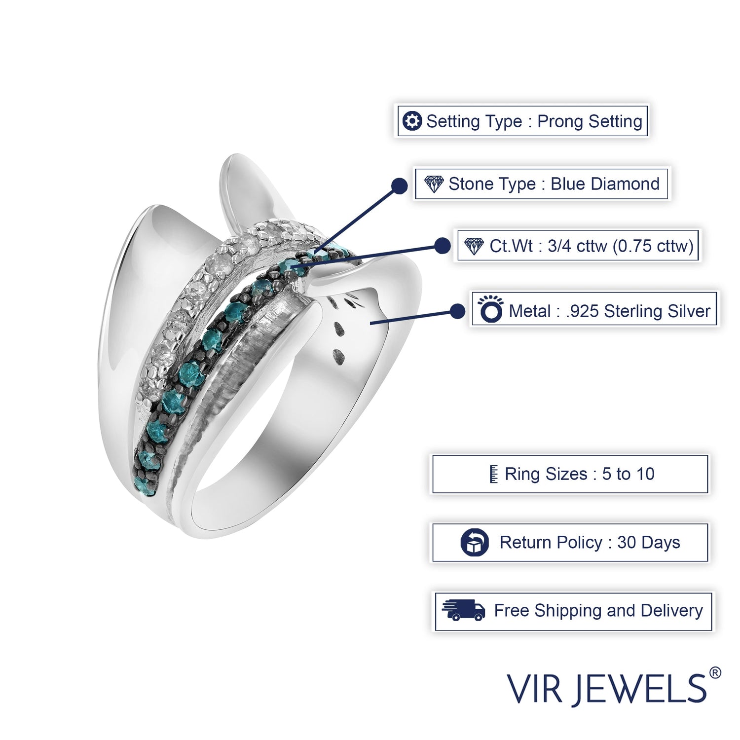 3/4 cttw Blue and White Diamond Ring .925 Sterling Silver with Rhodium