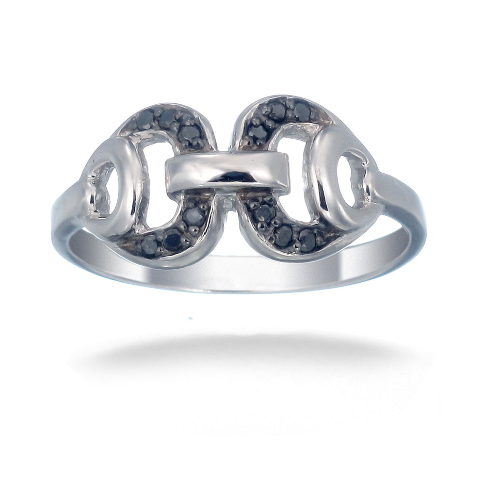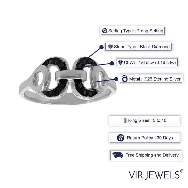 1/6 cttw Black Diamond Ring in .925 Sterling Silver with Rhodium Plating
