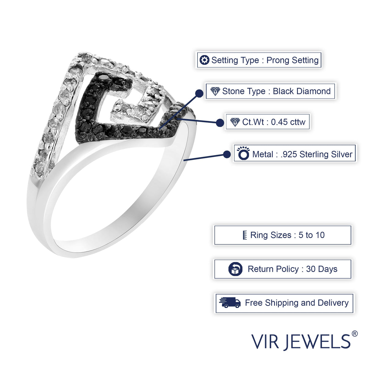 This Black and White Diamond Ring by Vir Jewels is a refined statement piece that beautifully contrasts shimmering white diamonds with deep black stones. The sophisticated arrangement of 38 diamonds enhances the ring's brilliance, making it a timeless addition to any collection. Perfect for daily wear or special occasions.