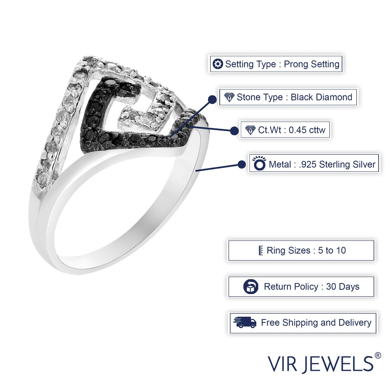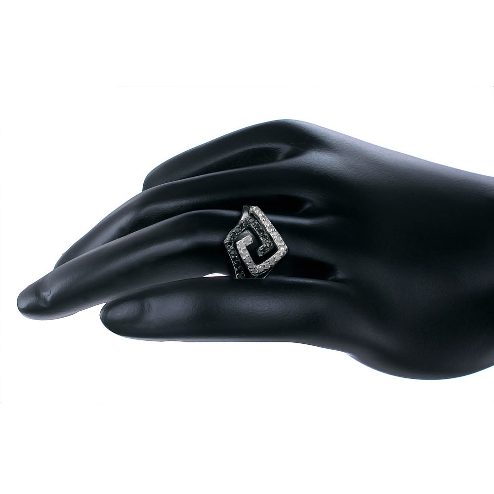 0.45 cttw Black and White Diamond Ring .925 Sterling Silver with Rhodium