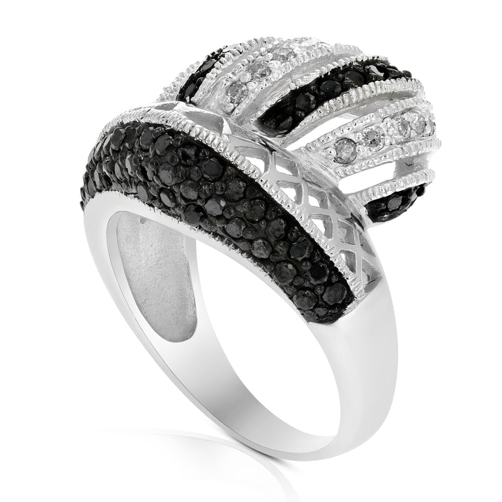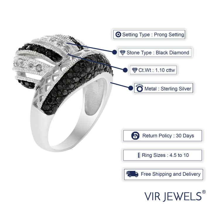 1.10 cttw Black and White Diamond Ring .925 Sterling Silver with Rhodium