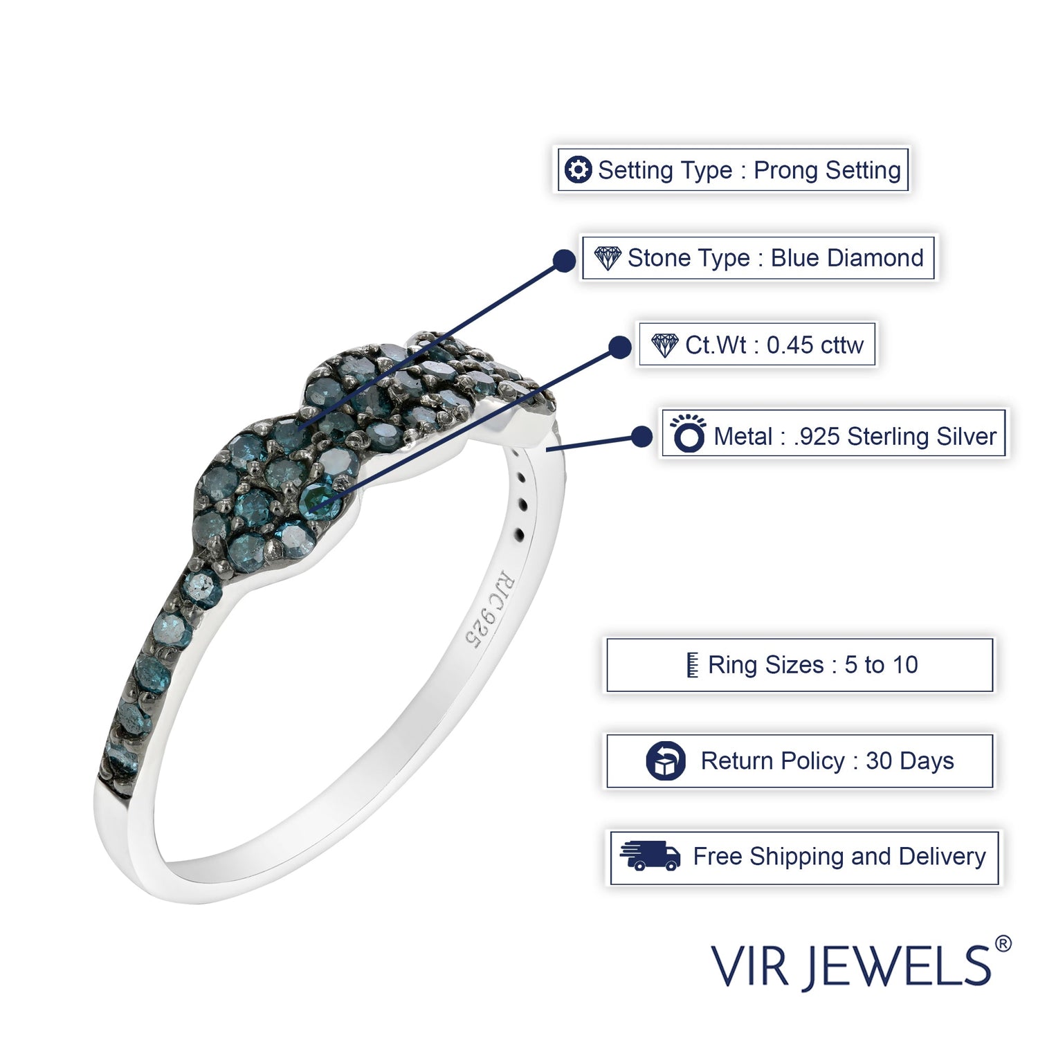 Handcrafted in .925 sterling silver with rhodium plating. Set with 40 natural blue diamonds (irradiated), totaling 0.45 cttw, in a prong setting. Ring width: 4 mm. Diamond clarity: I1-I2.