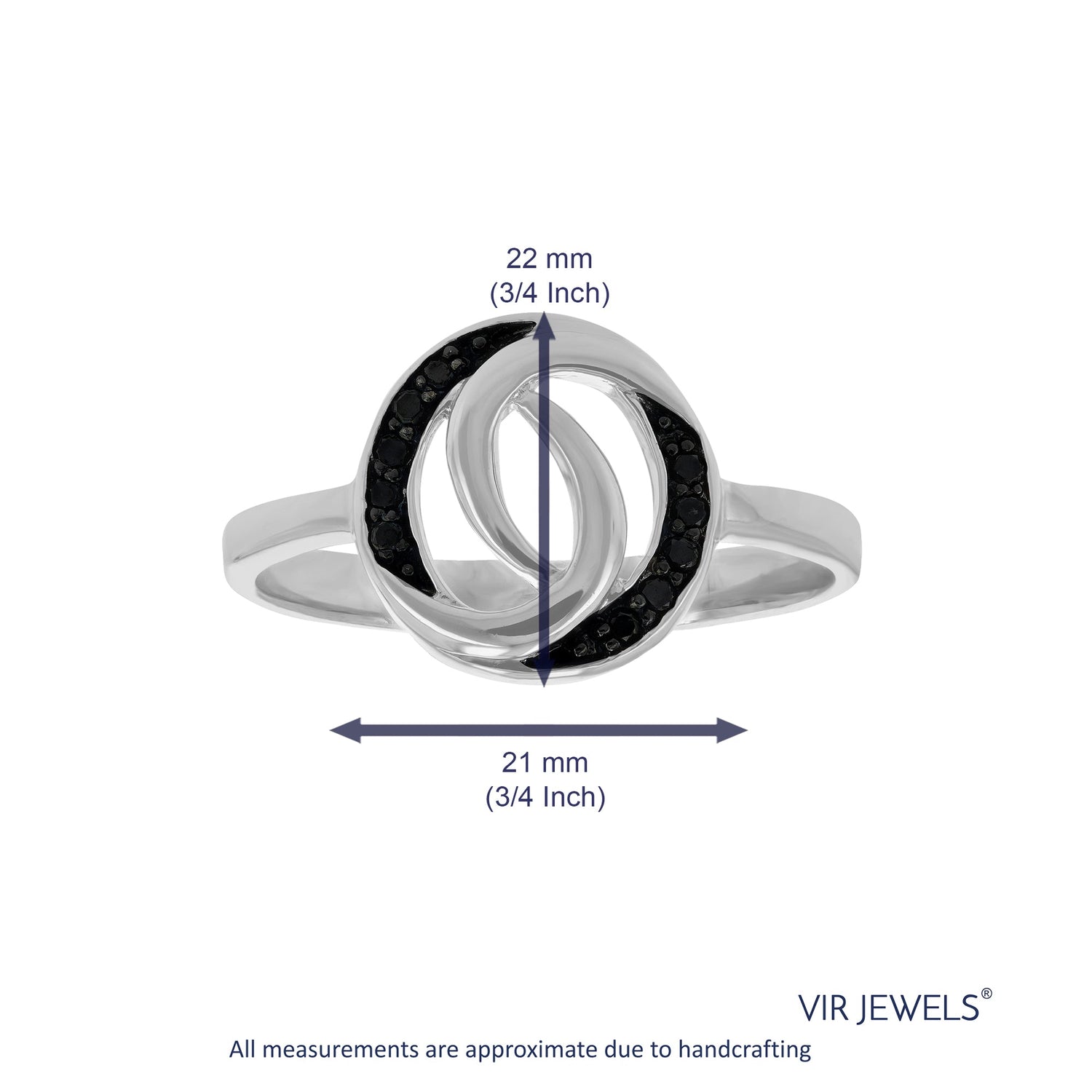 Handcrafted in .925 sterling silver with black rhodium plating. Set with natural round black diamonds (heat-treated), totaling 1/10 cttw (0.10 cttw). Diamond clarity: I1-I2.