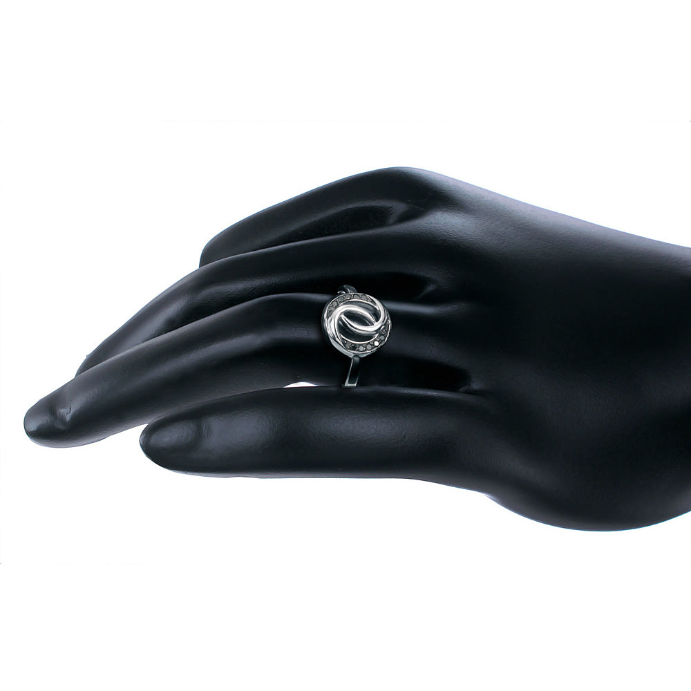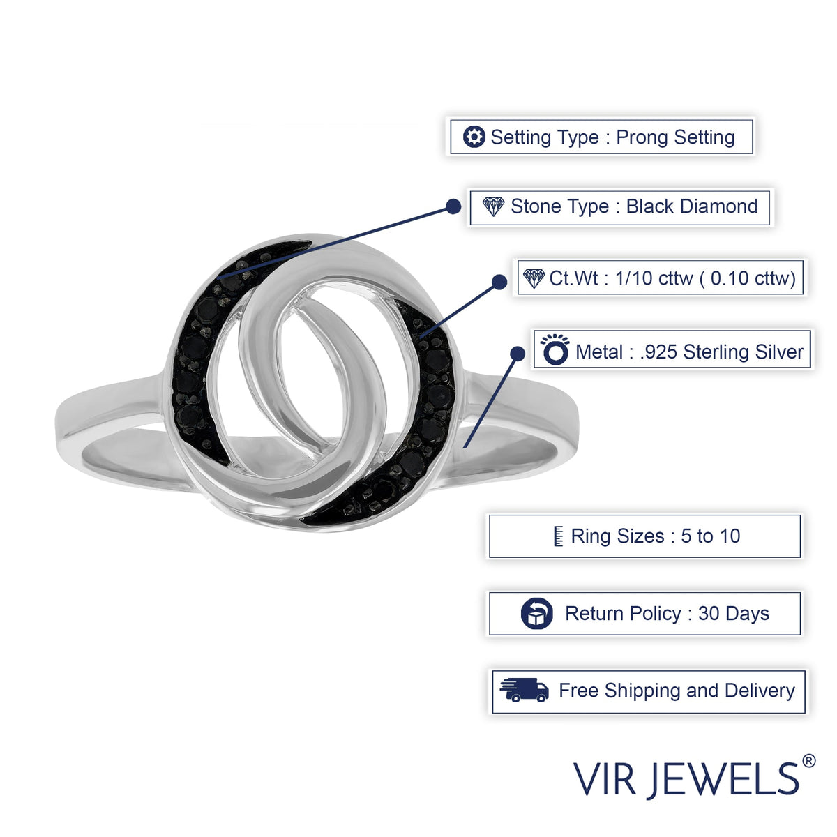 1/10 cttw Black Diamond Ring in .925 Sterling Silver with Rhodium Plating
