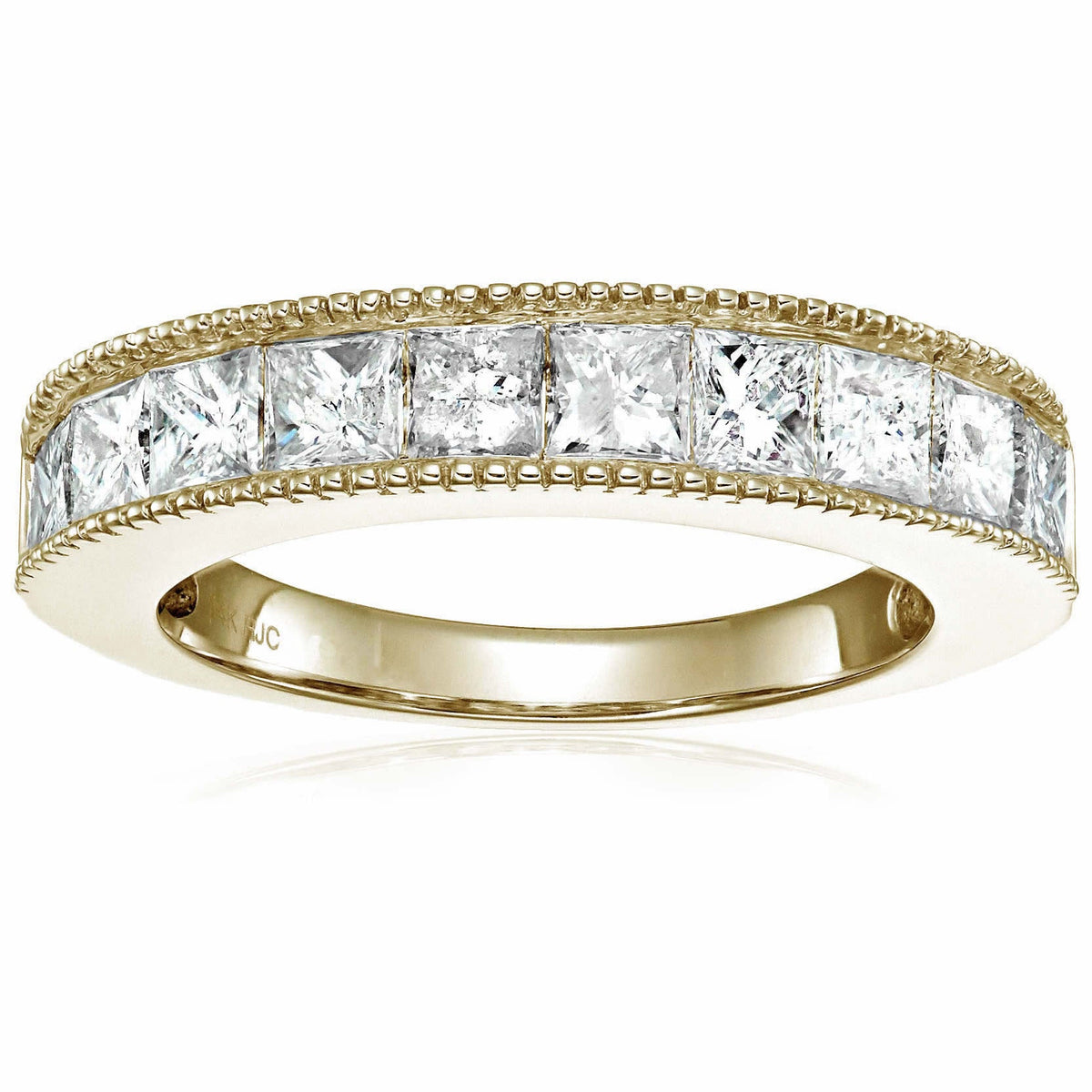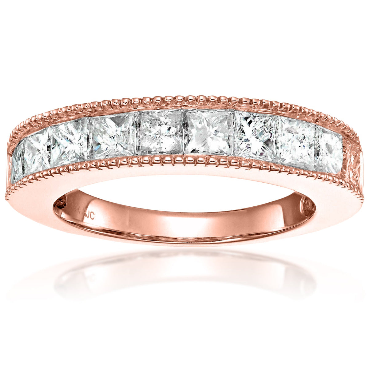 1 cttw Princess Diamond Wedding Band Milgrain Channel 14K White or Yellow Gold