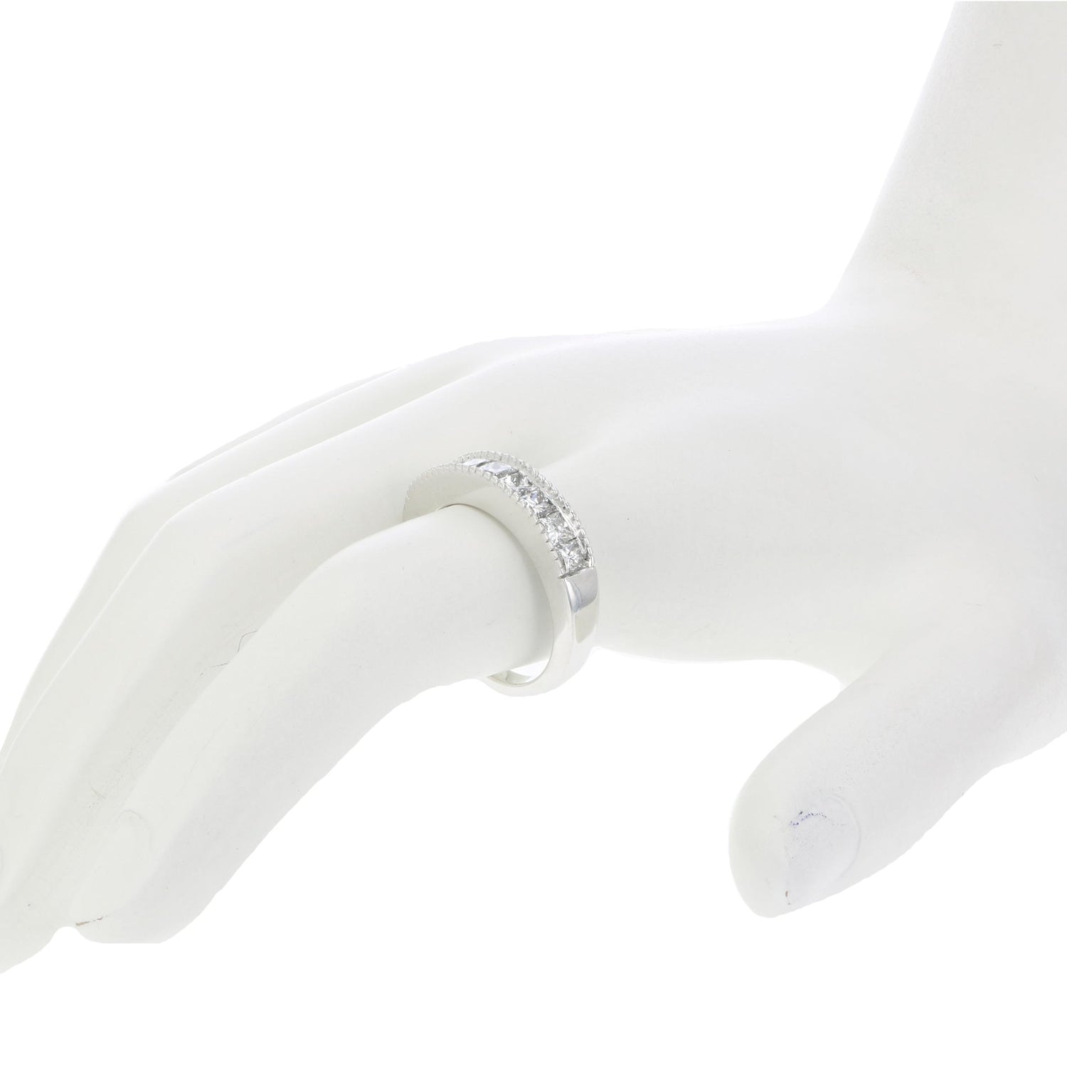 Handcrafted in 14K white or yellow gold. Set with 9 to 12 natural princess-cut diamonds, totaling 1 cttw, in a channel setting. Ring weight: 2.7 grams. Diamond clarity: I1-I2. Diamond color: I-J.