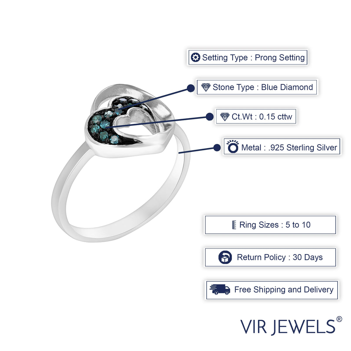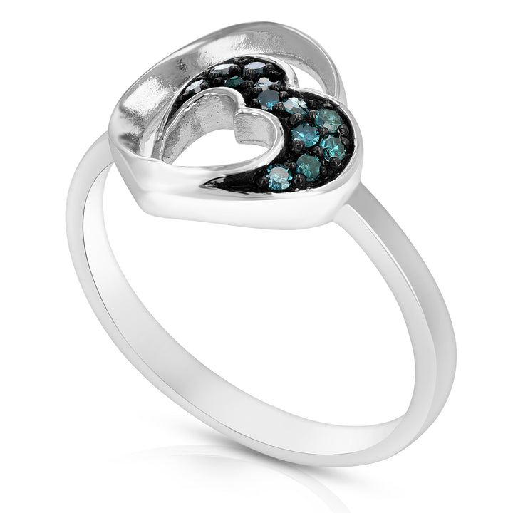 0.15 cttw Blue Diamond Heart Ring .925 Sterling Silver with Rhodium