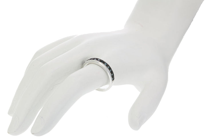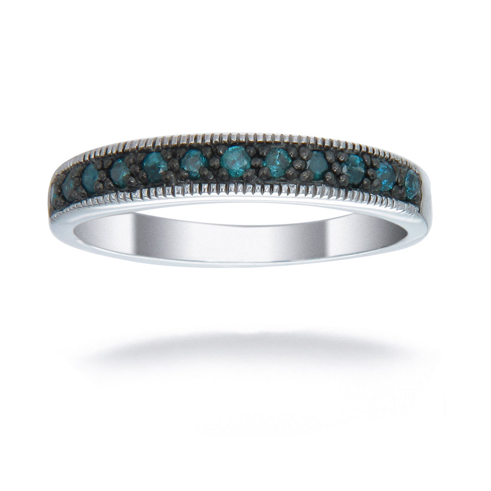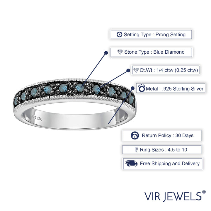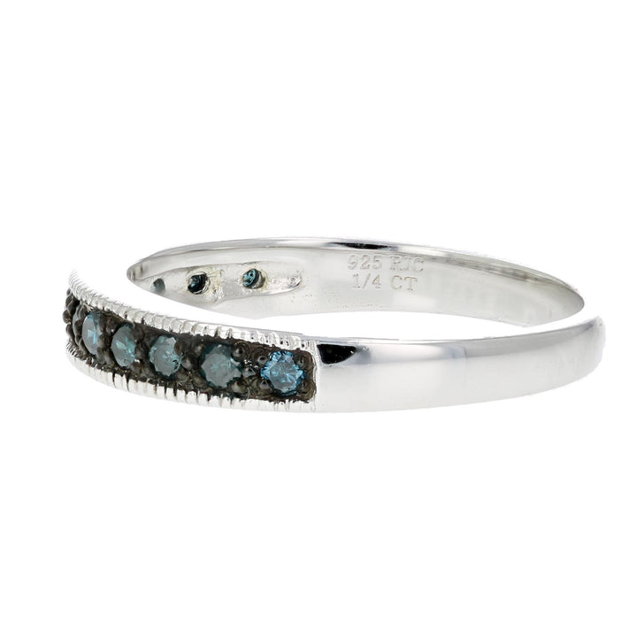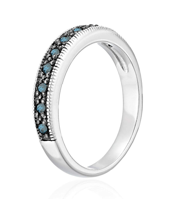 1/4 cttw Blue Diamond Ring Wedding Band with Milgrain .925 Sterling Silver